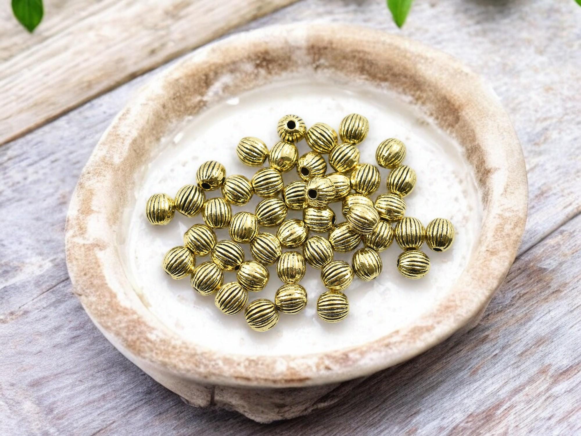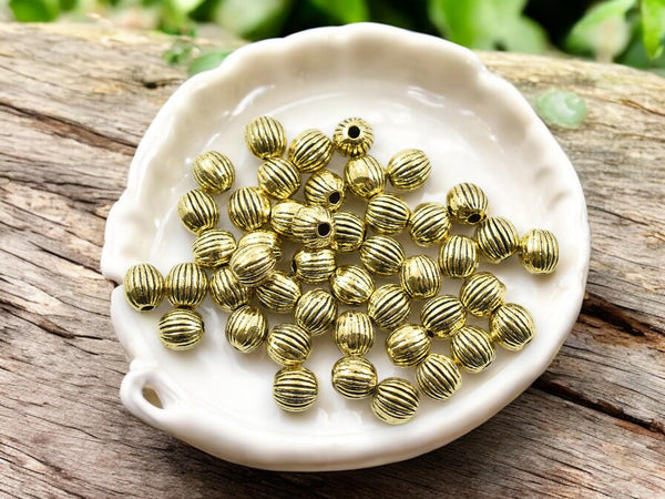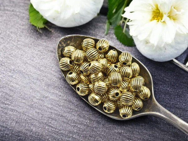 *50* 6mm Antique Gold Round Melon Bead Spacers