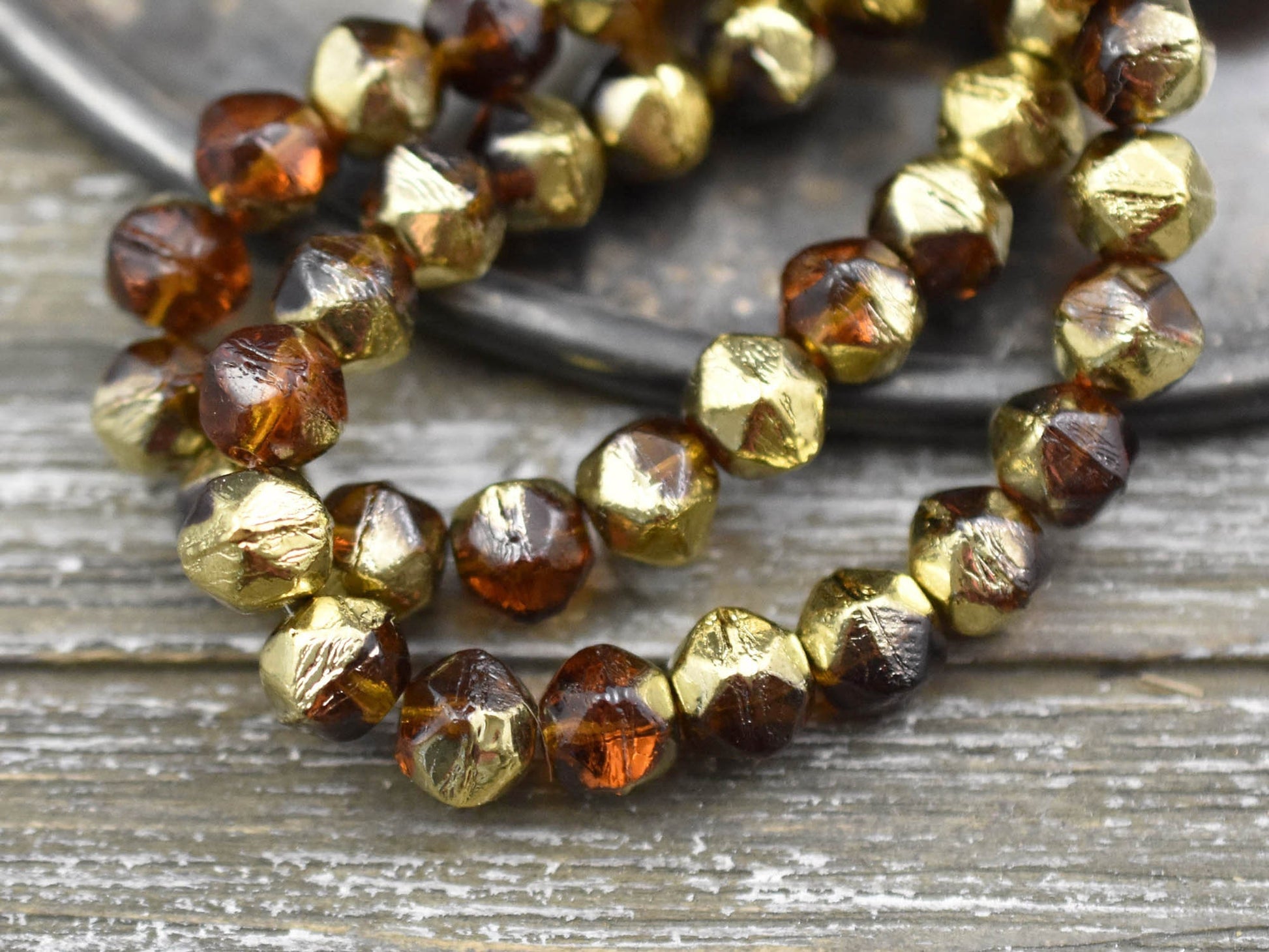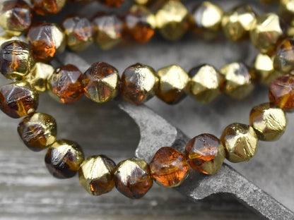 Gold Washed Root Beer Antique Cut Round Beads -- Choose Your Size