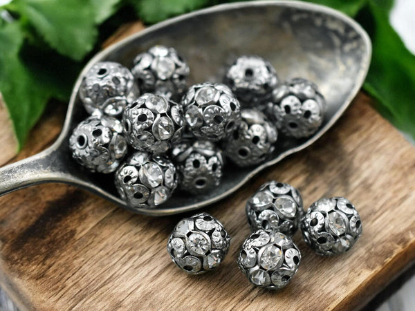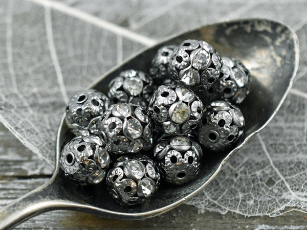 Gunmetal Rhinestone Filigree Round Beads -- Choose Your Size