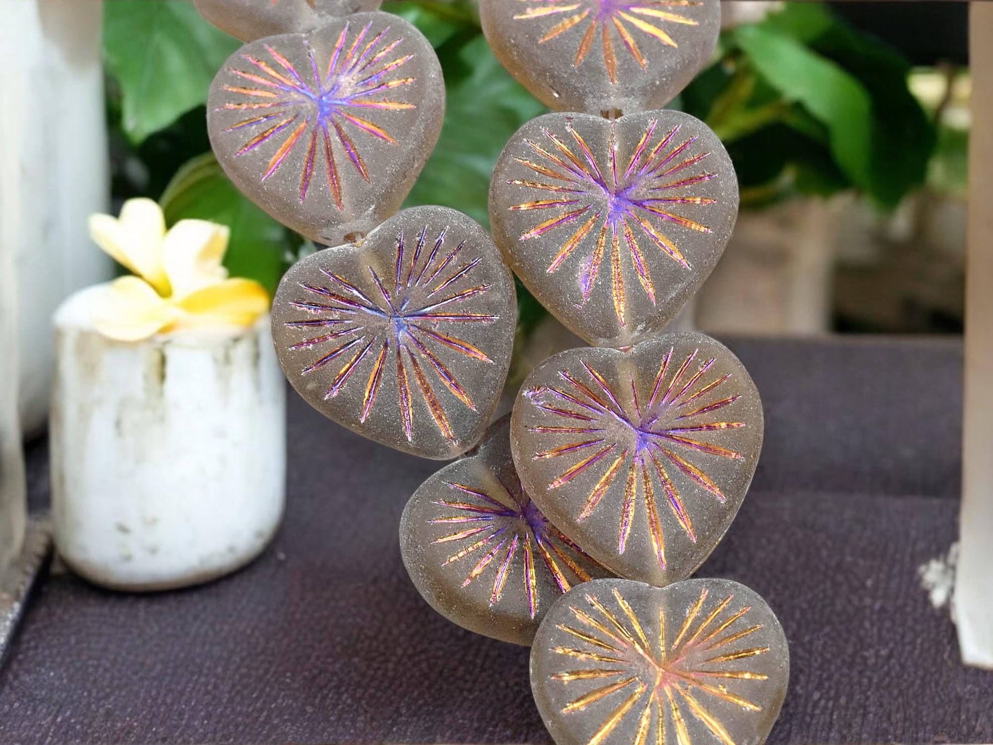 *6* 18mm Metallic Volcano Washed Matte Black Diamond Heart Beads