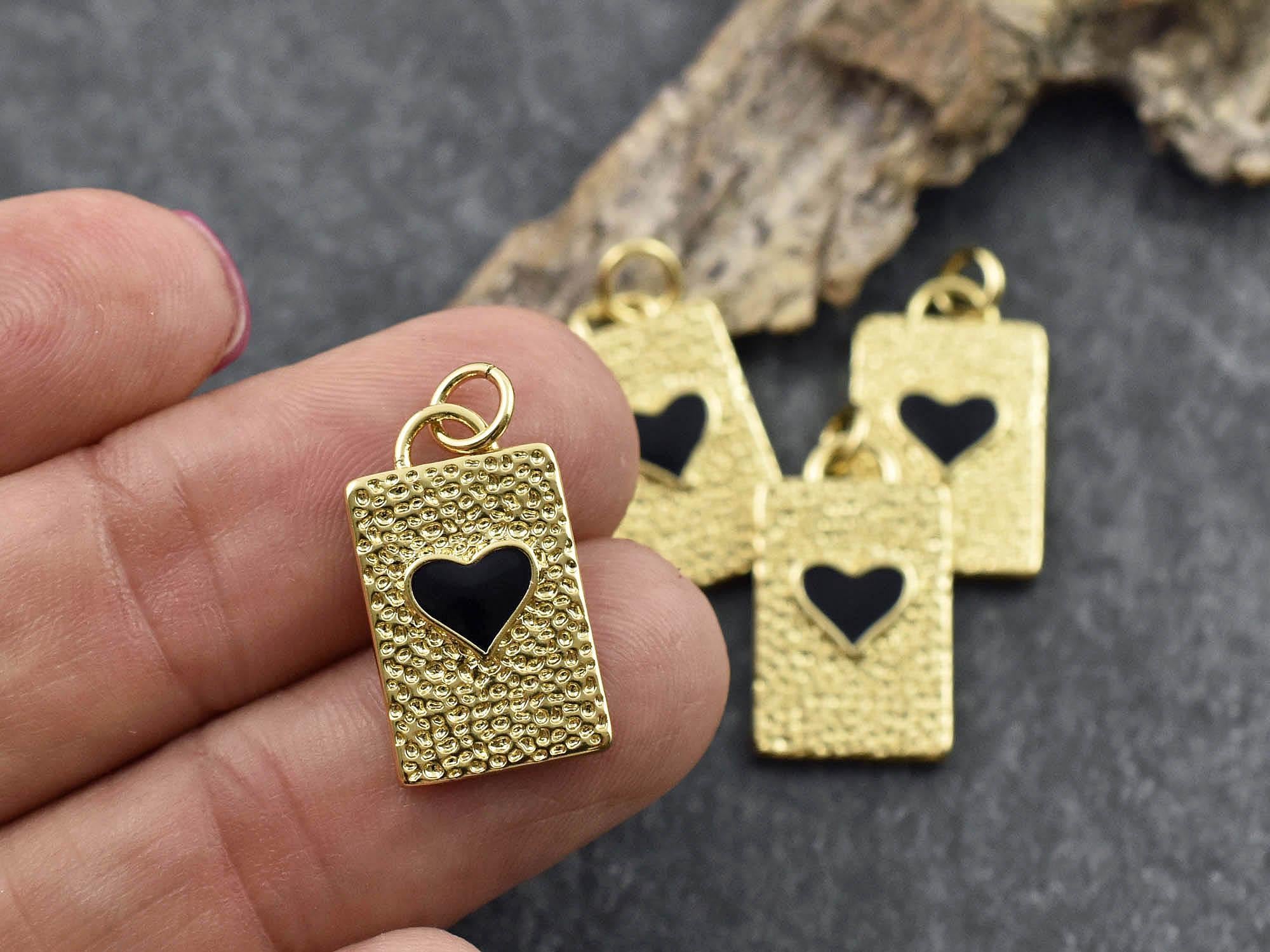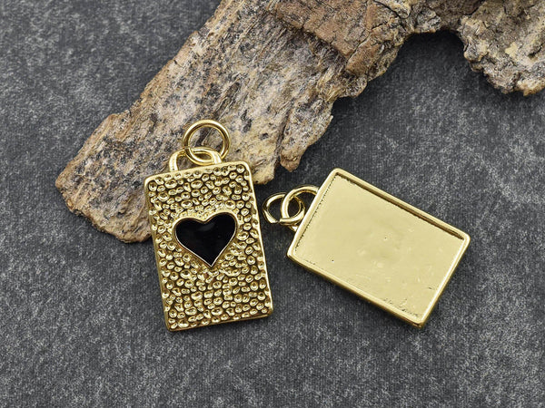 Type/Shape: 18k gold plated brass heart rectangle charm/pendant