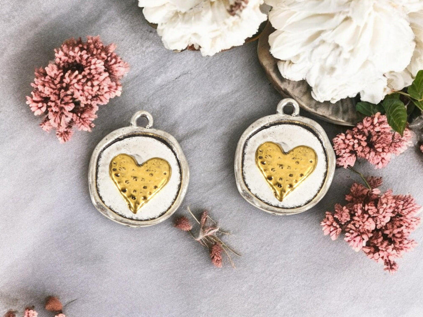 *10* 23x19mm 2 Tone Silver/Gold Heart Charms