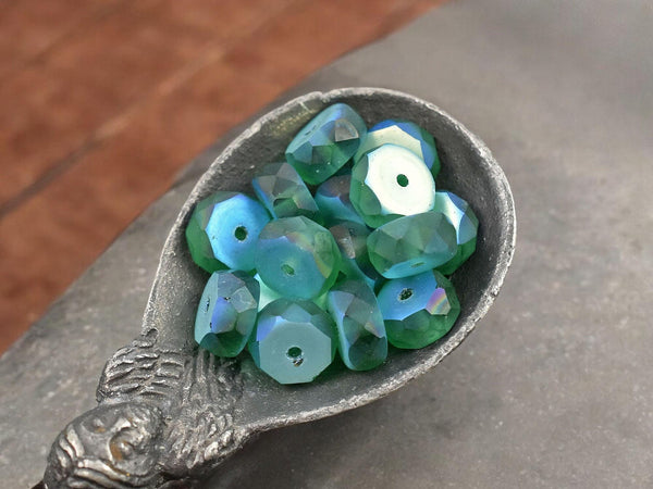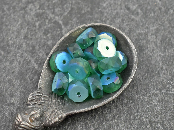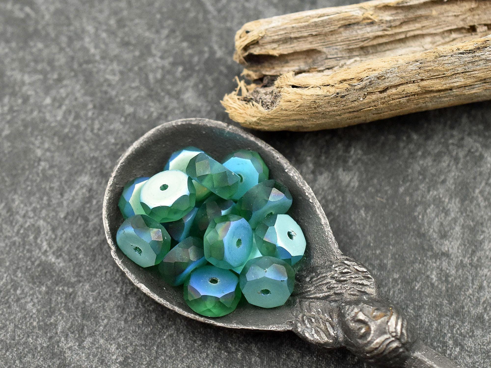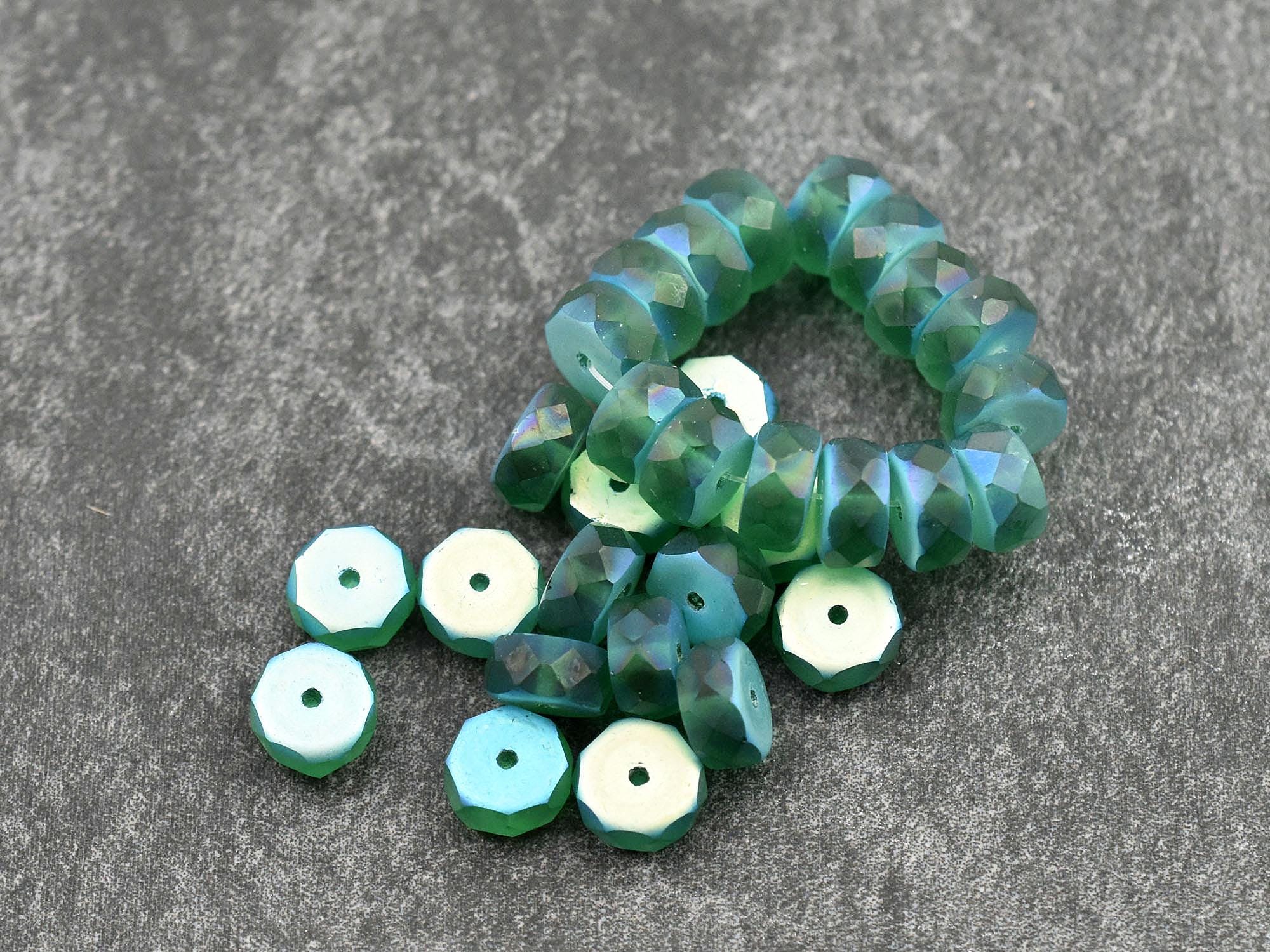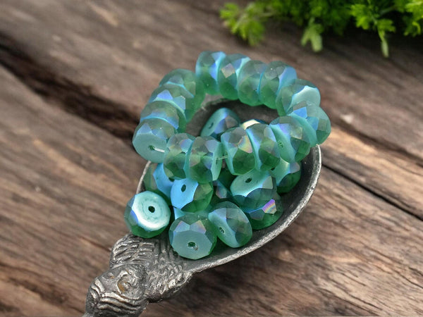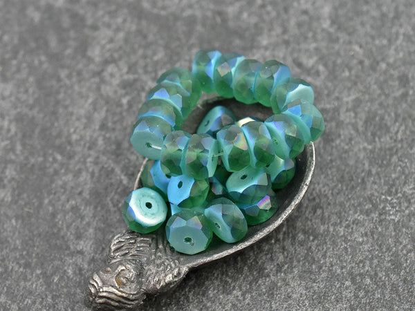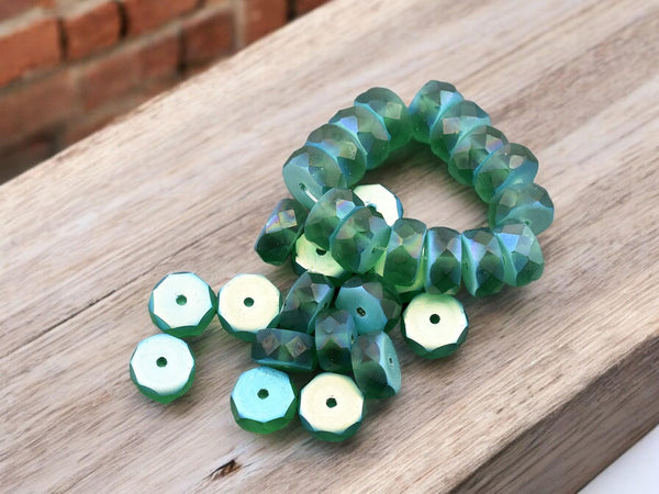 *15* 4x6mm Matte Emerald AB Fire Polished Rondelle Heishi Beads