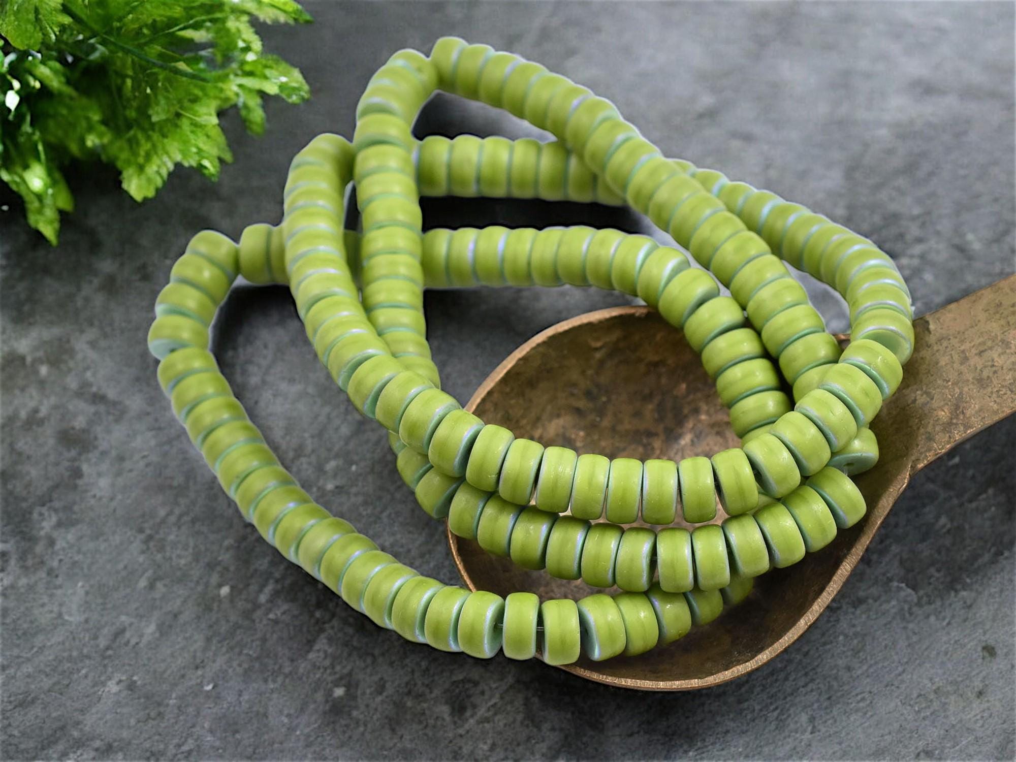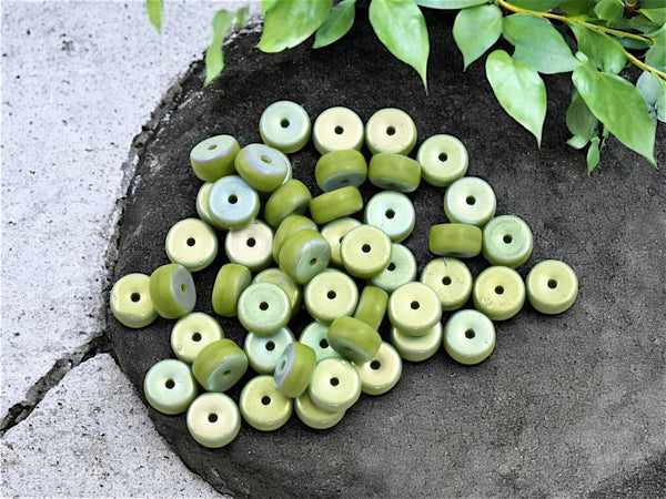 *50* 6x3mm Matte Opaque Avocado Green AB Heishi Beads