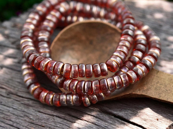 *50* 6x3mm Copper Washed Ruby Red Heishi Rondelle Beads