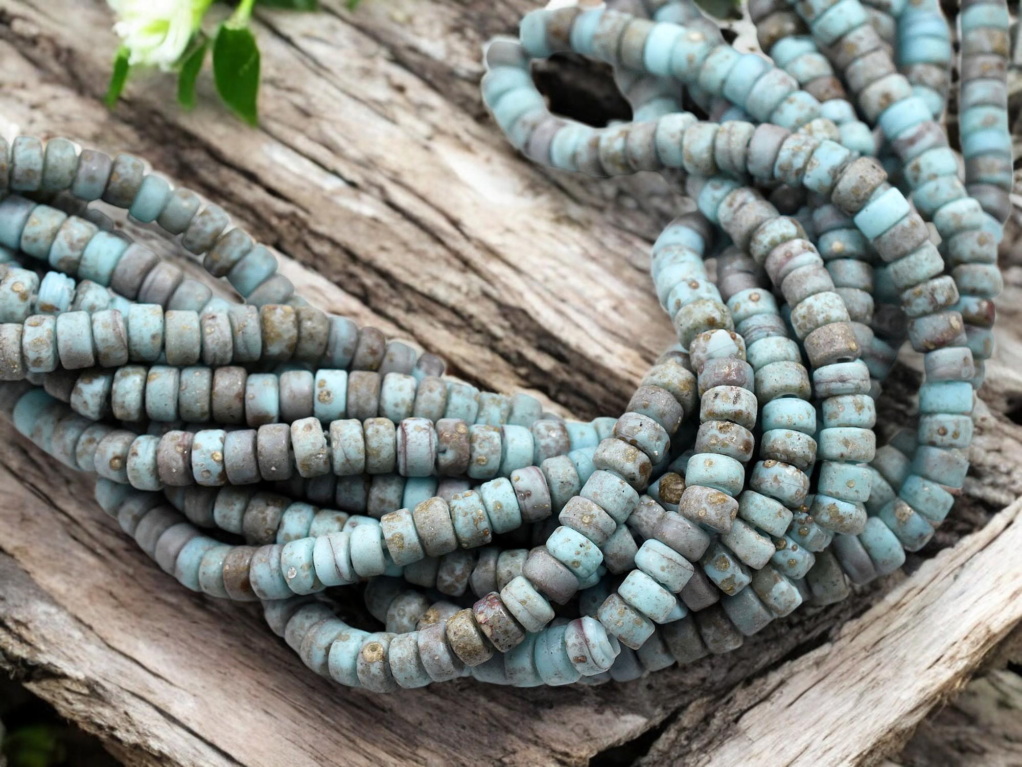 6x3mm Aged Robins Egg Blue Indonesian Heishi Beads (20" Strand)