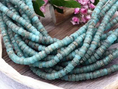 6x3mm Rustic Blue Aqua Indonesian Heishi Beads (20" Strand)