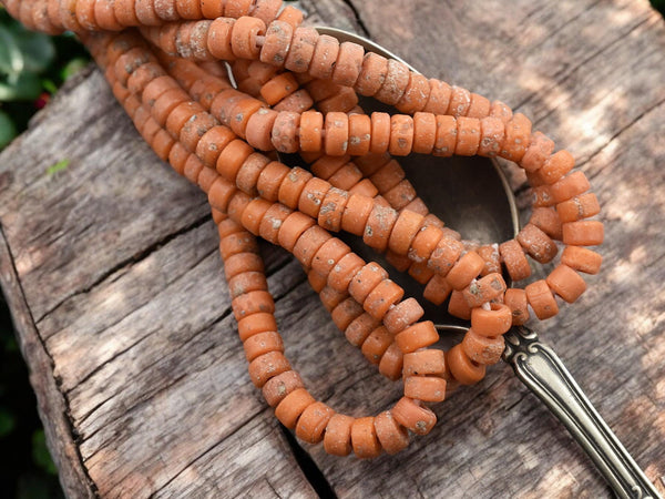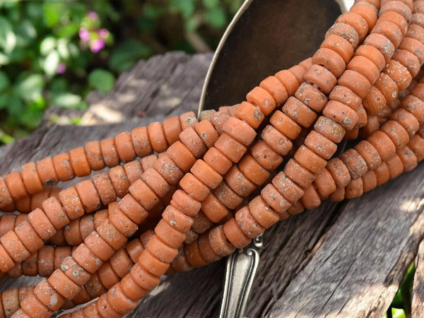 6x3mm Rustic Pumpkin Java Glass Heishi Beads (20" Strand) - Indonesian Glass