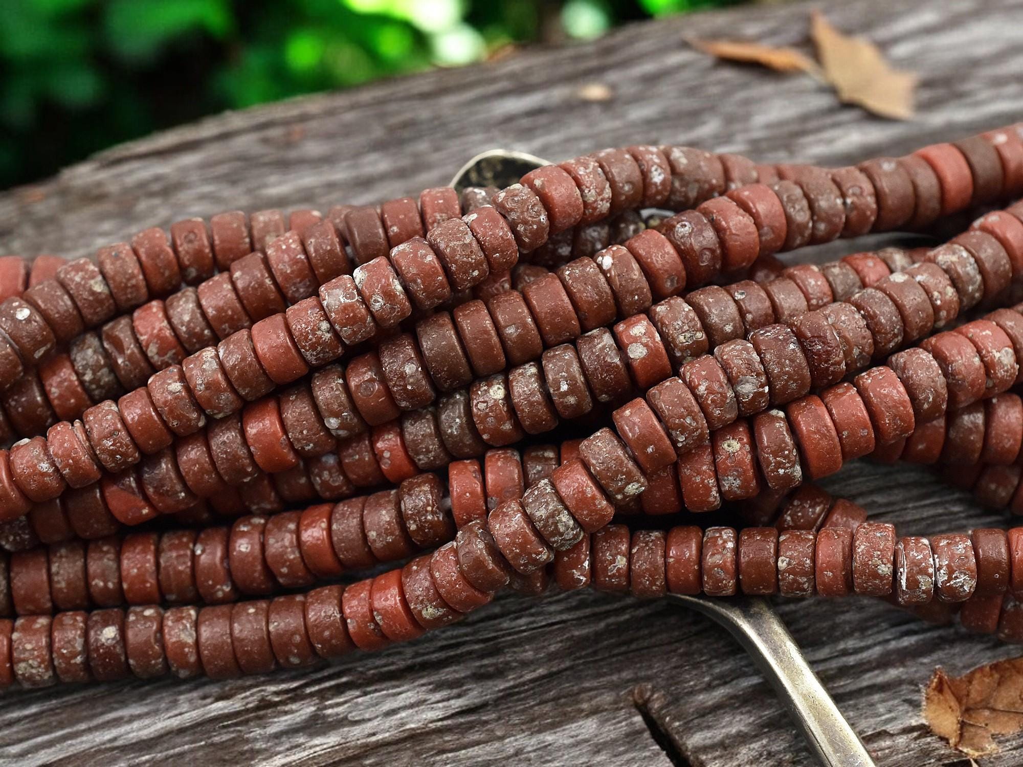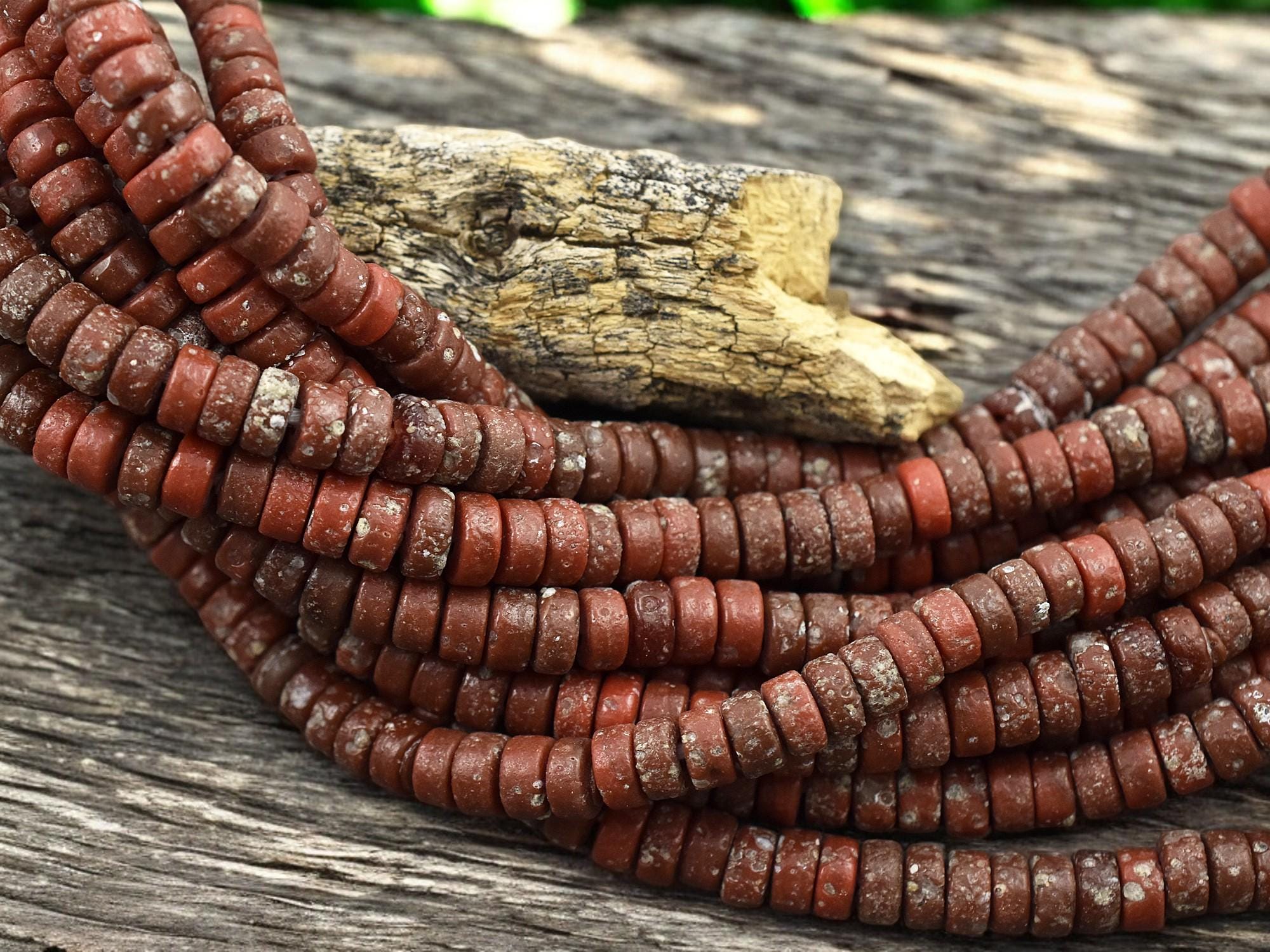 6x3mm Aged Red Java Glass Heishi Beads (20" Strand) - Indonesian Glass