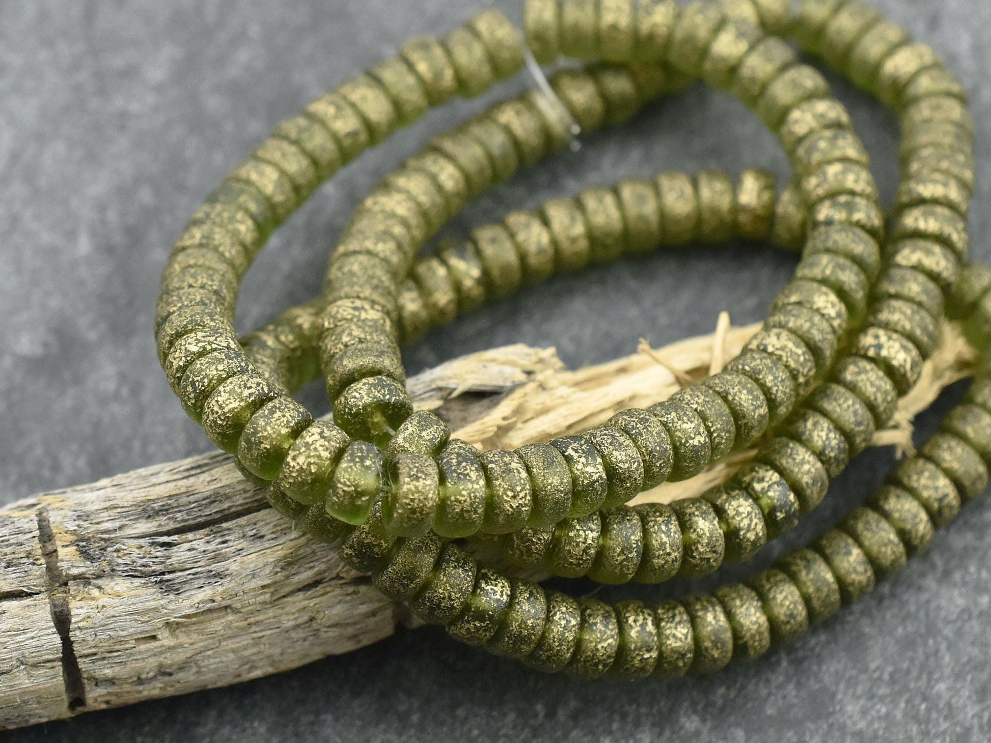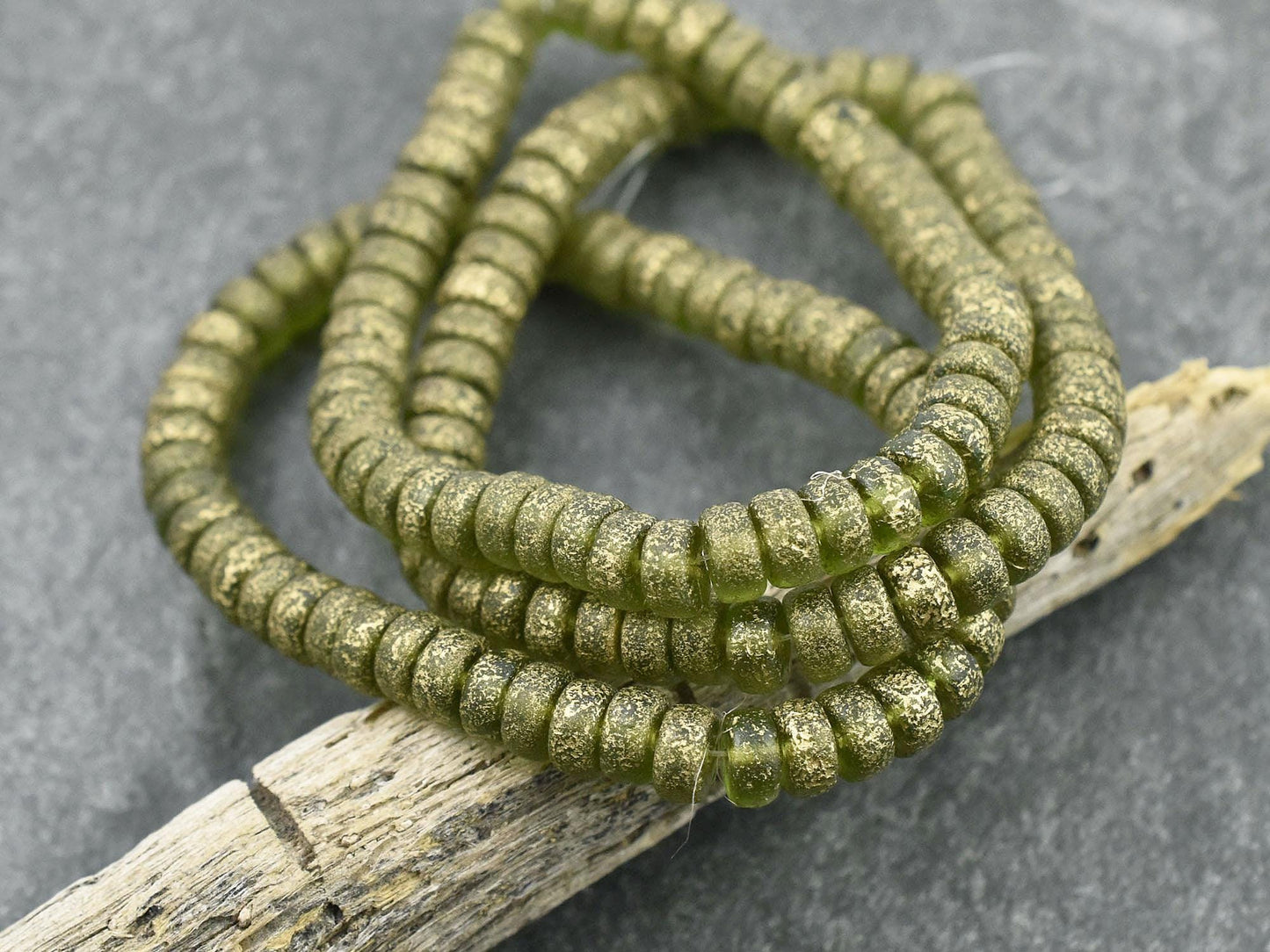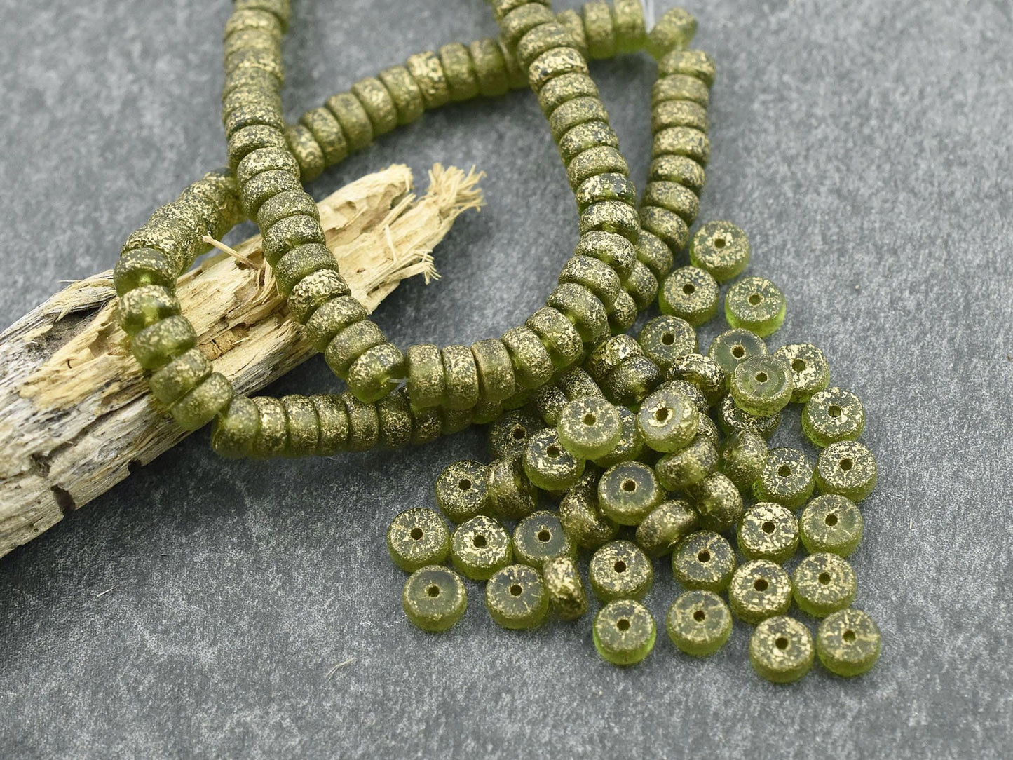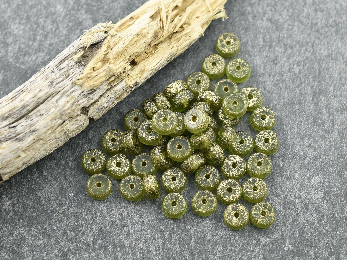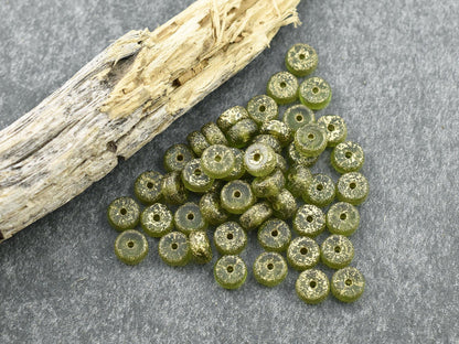 *50* 6x3mm Gold Washed Etched Peridot Heishi Rondelle Beads