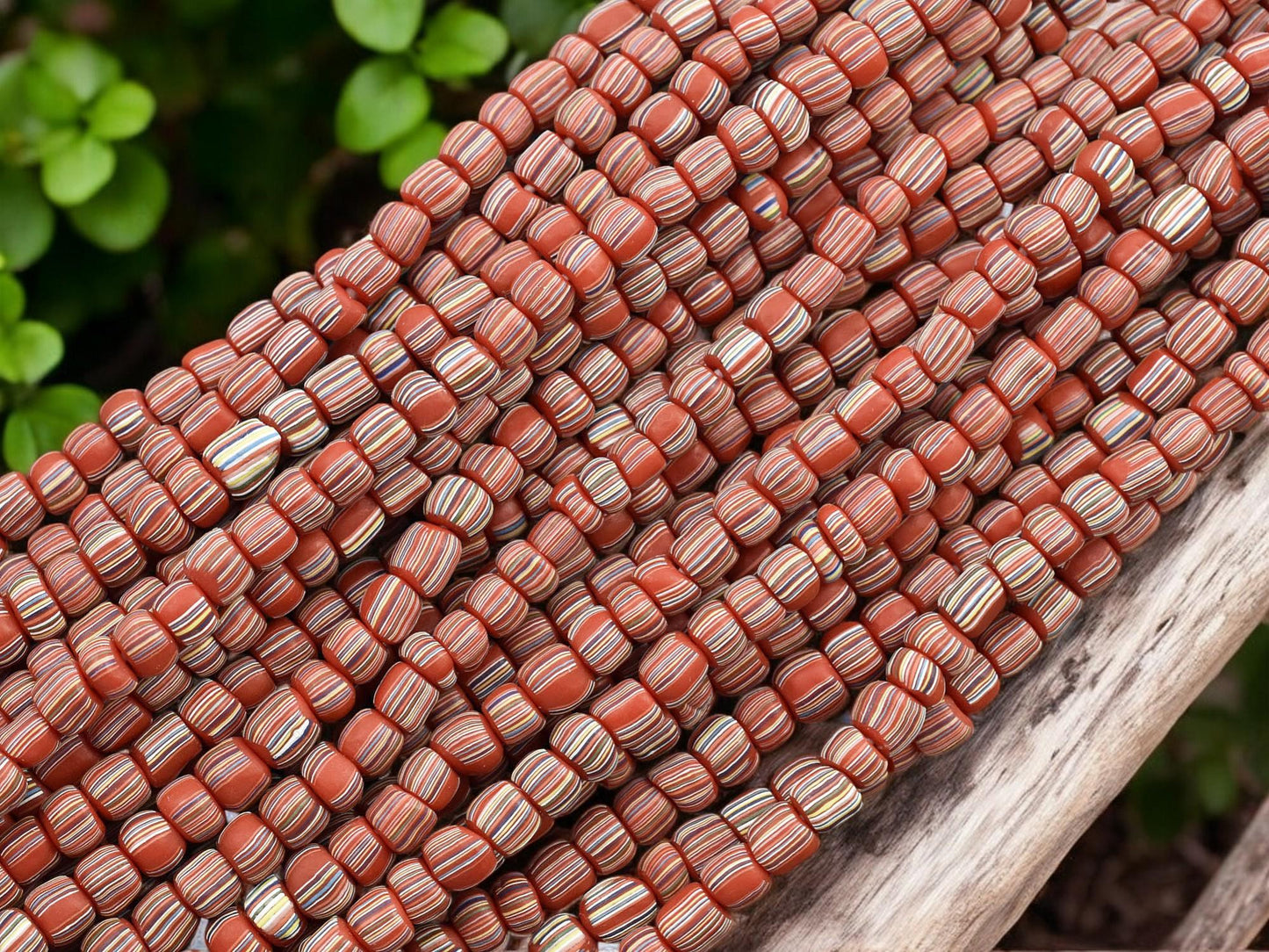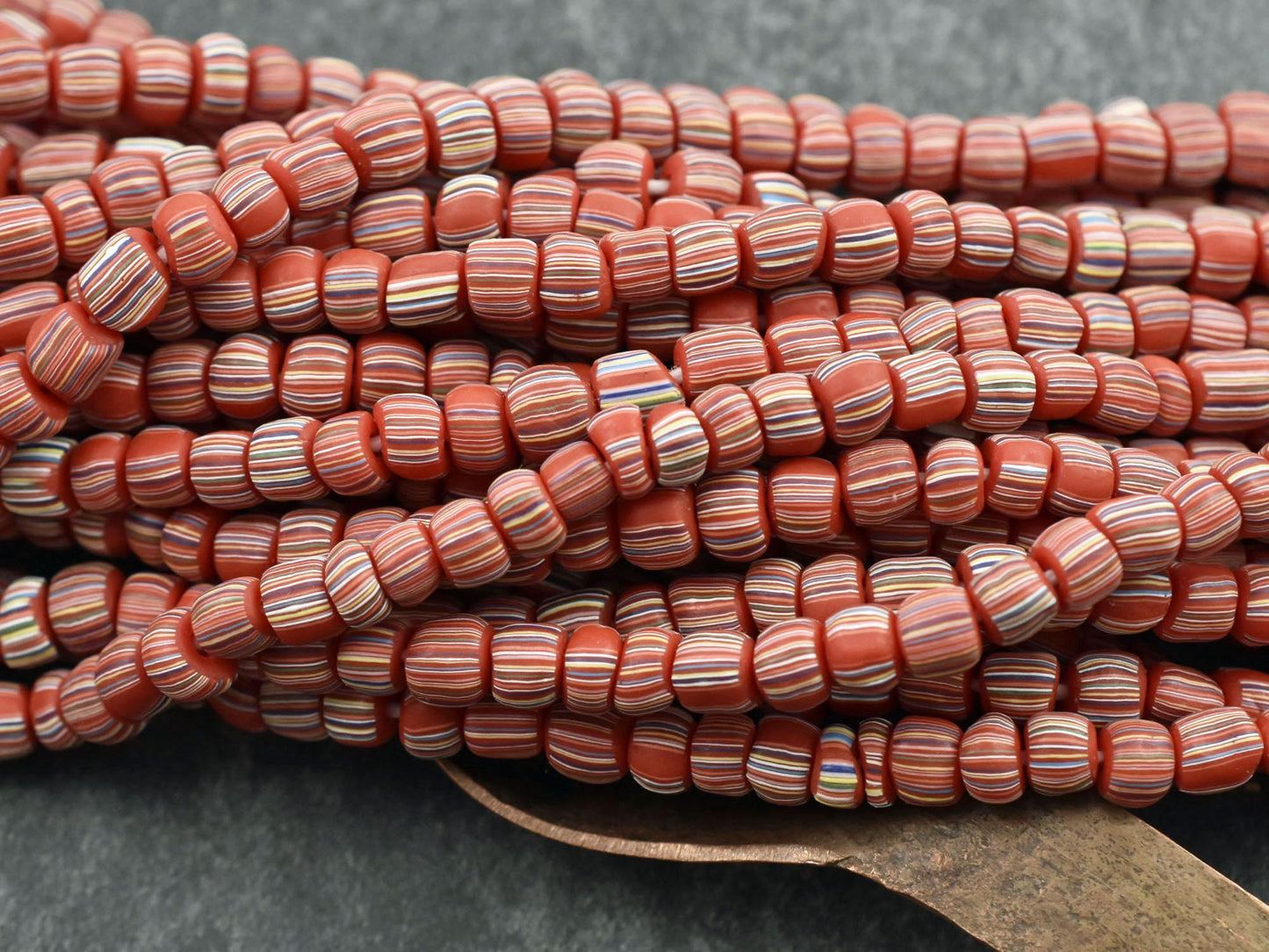Striped Java Glass Beads. 4-7mm beads. Approx 24" Strands. 6-7 beads per inch.