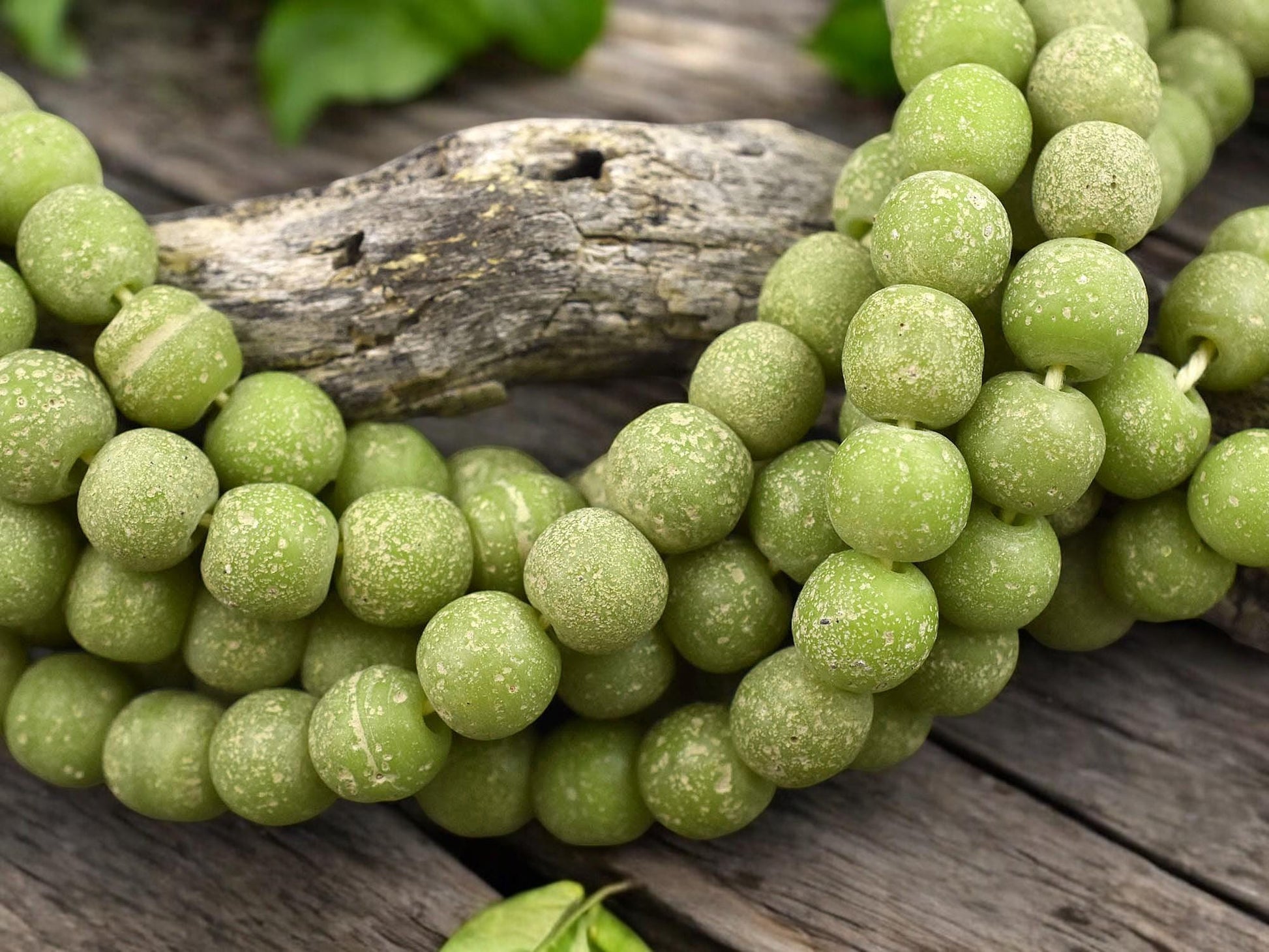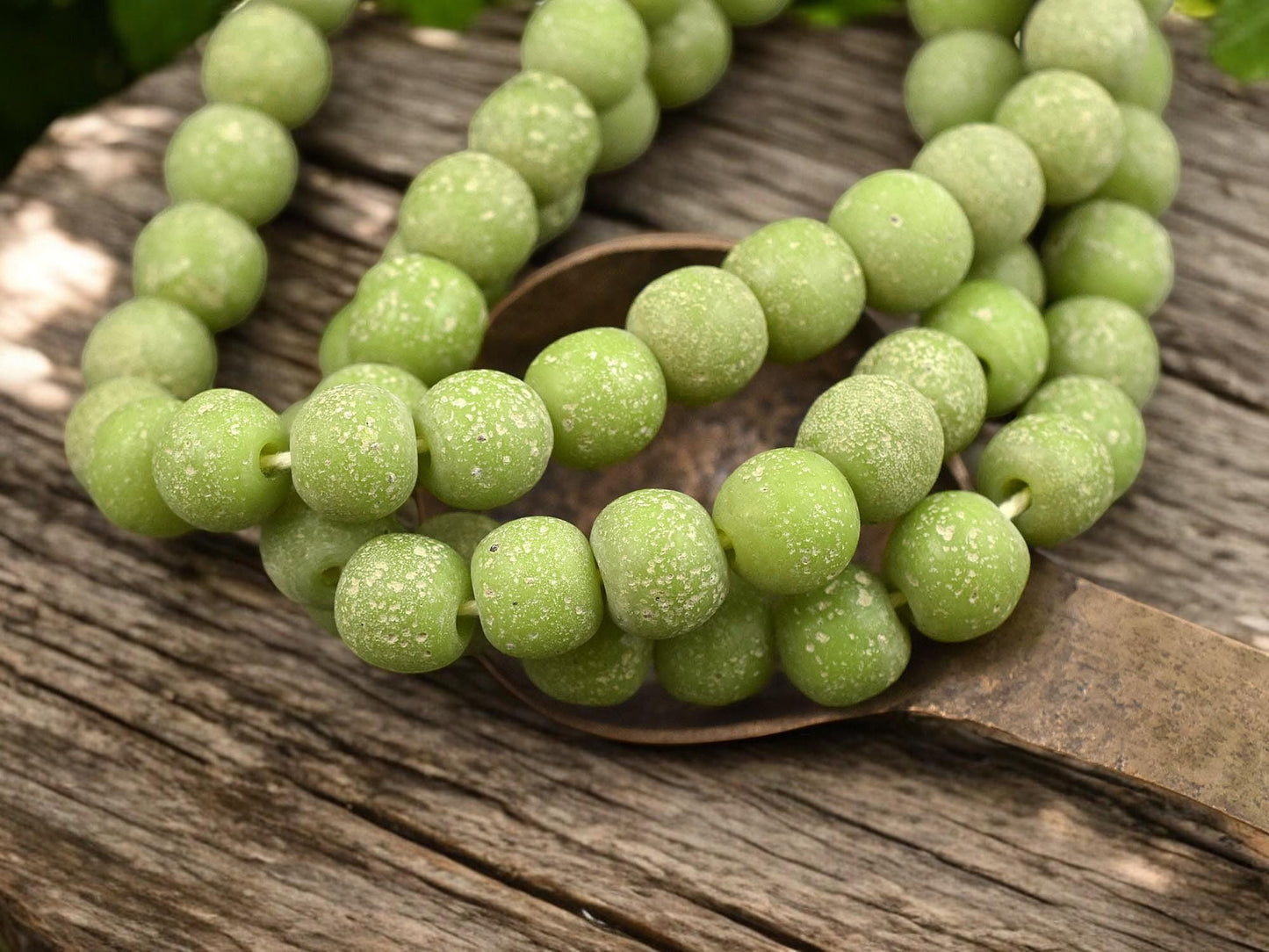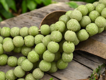Green Apple Pompeii Round Beads (24" Strand) Indonesian Glass Beads