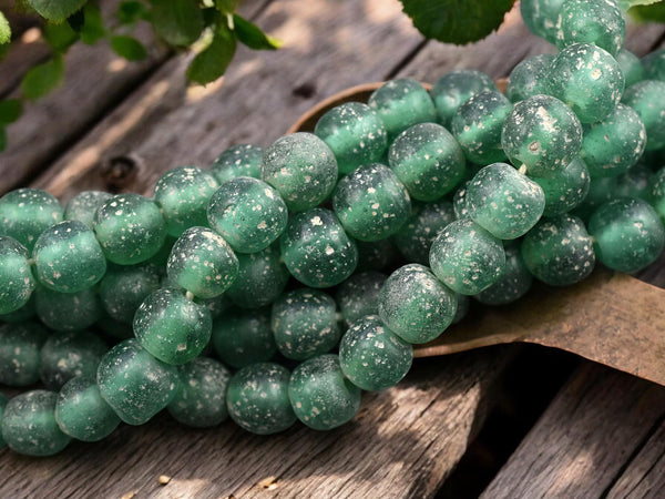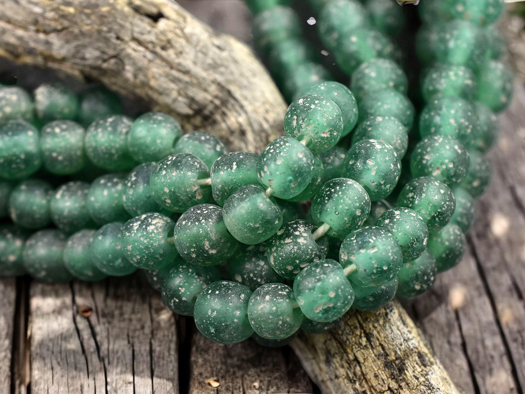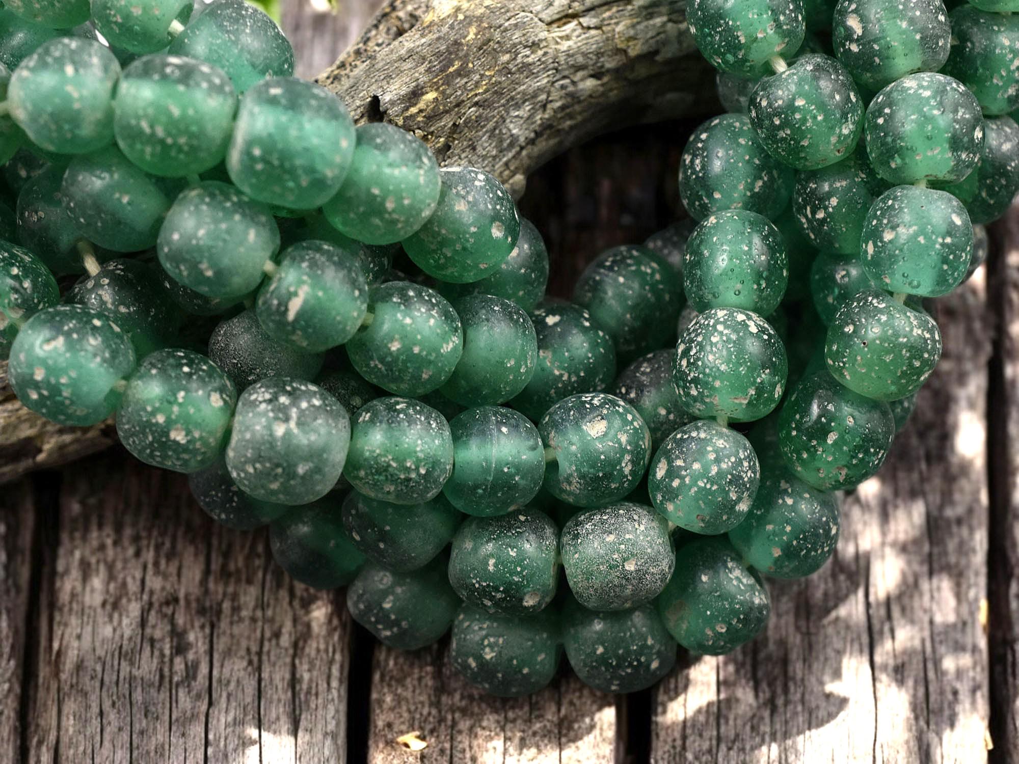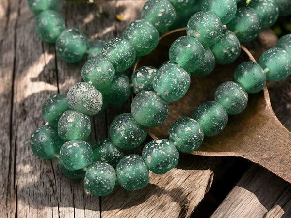 Emerald Green Pompeii Round Beads (24" Strand) Indonesian Glass Beads