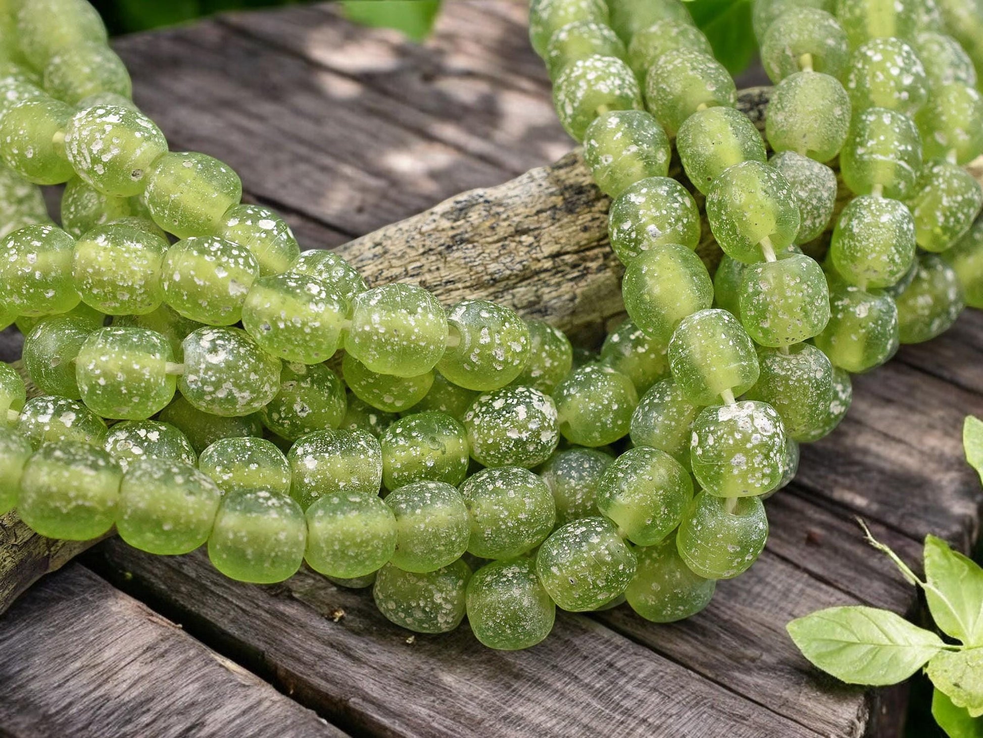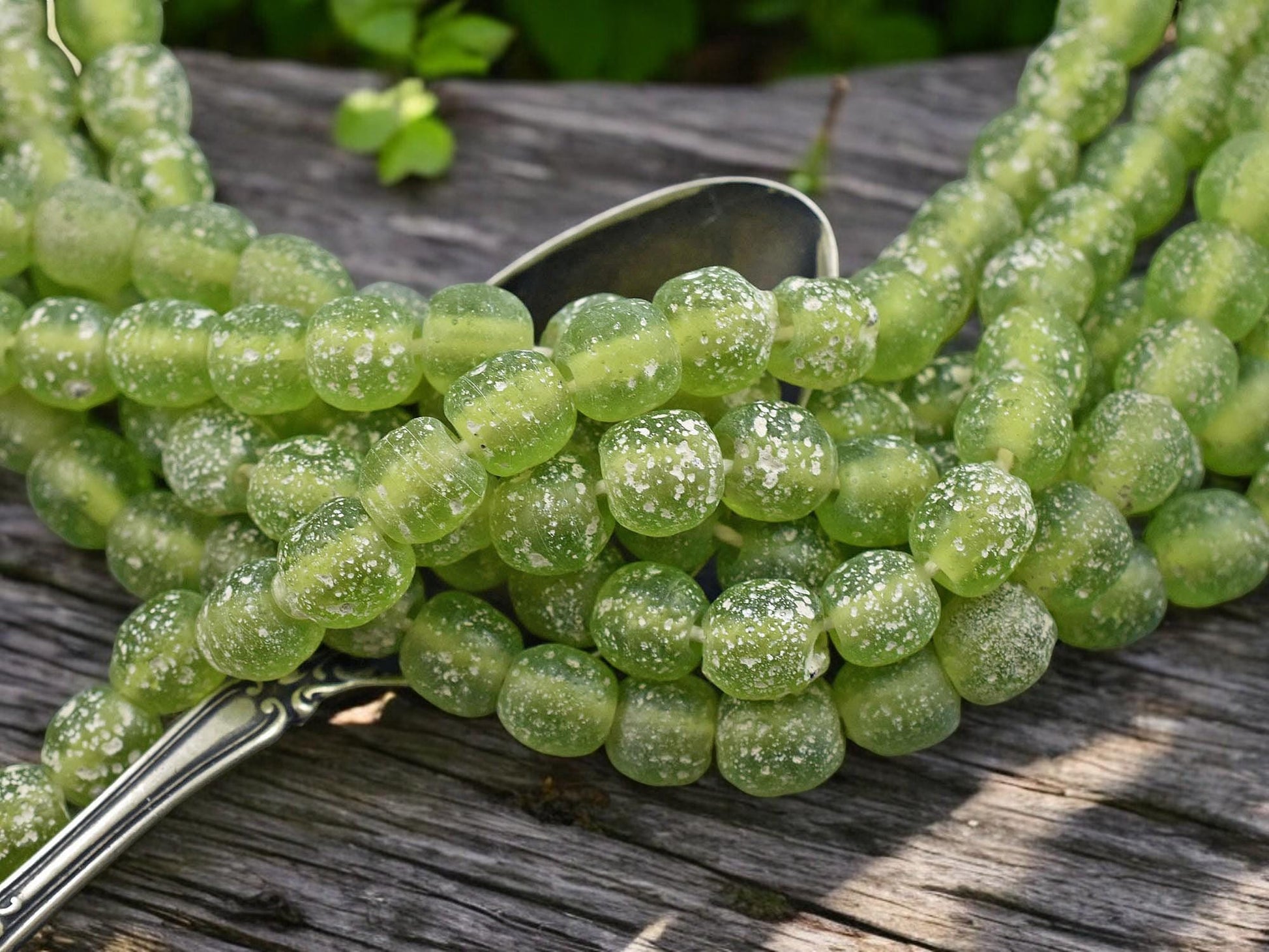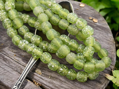 Peridot Pompeii Round Beads (24" Strand) Indonesian Glass Beads