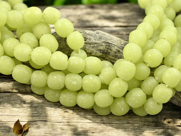Citrus Green Pompeii Round Beads (24" Strand) Indonesian Glass Beads