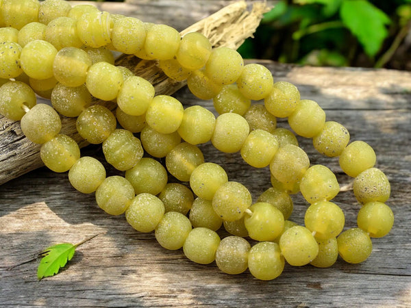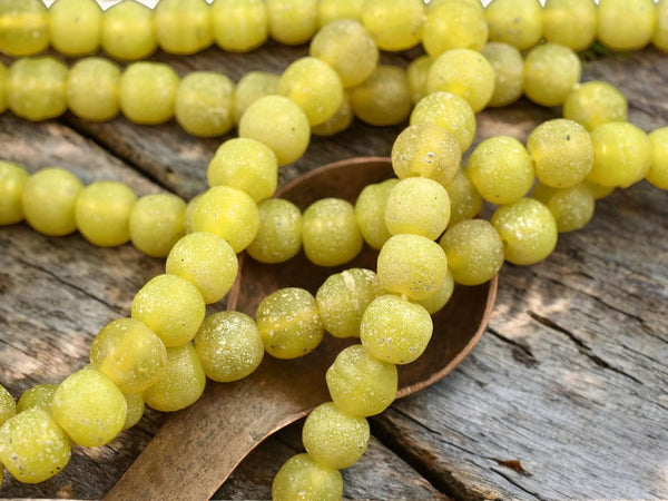 Dandelion Yellow Pompeii Round Beads (24" Strand) Indonesian Glass Beads