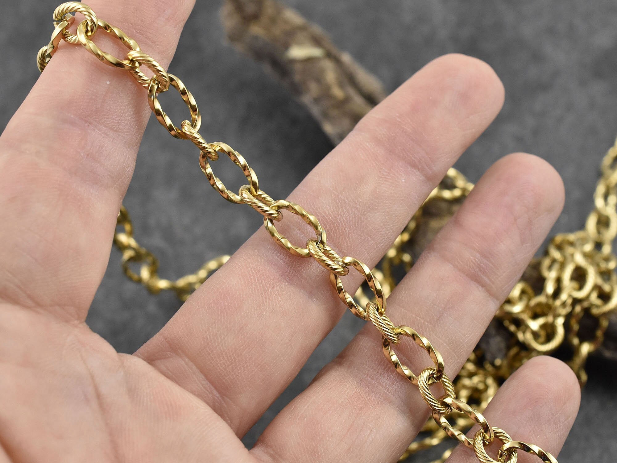 Ion Plated (Gold) 304 Stainless Twisted Oval Link Chain 11x7mm - 8x7mm