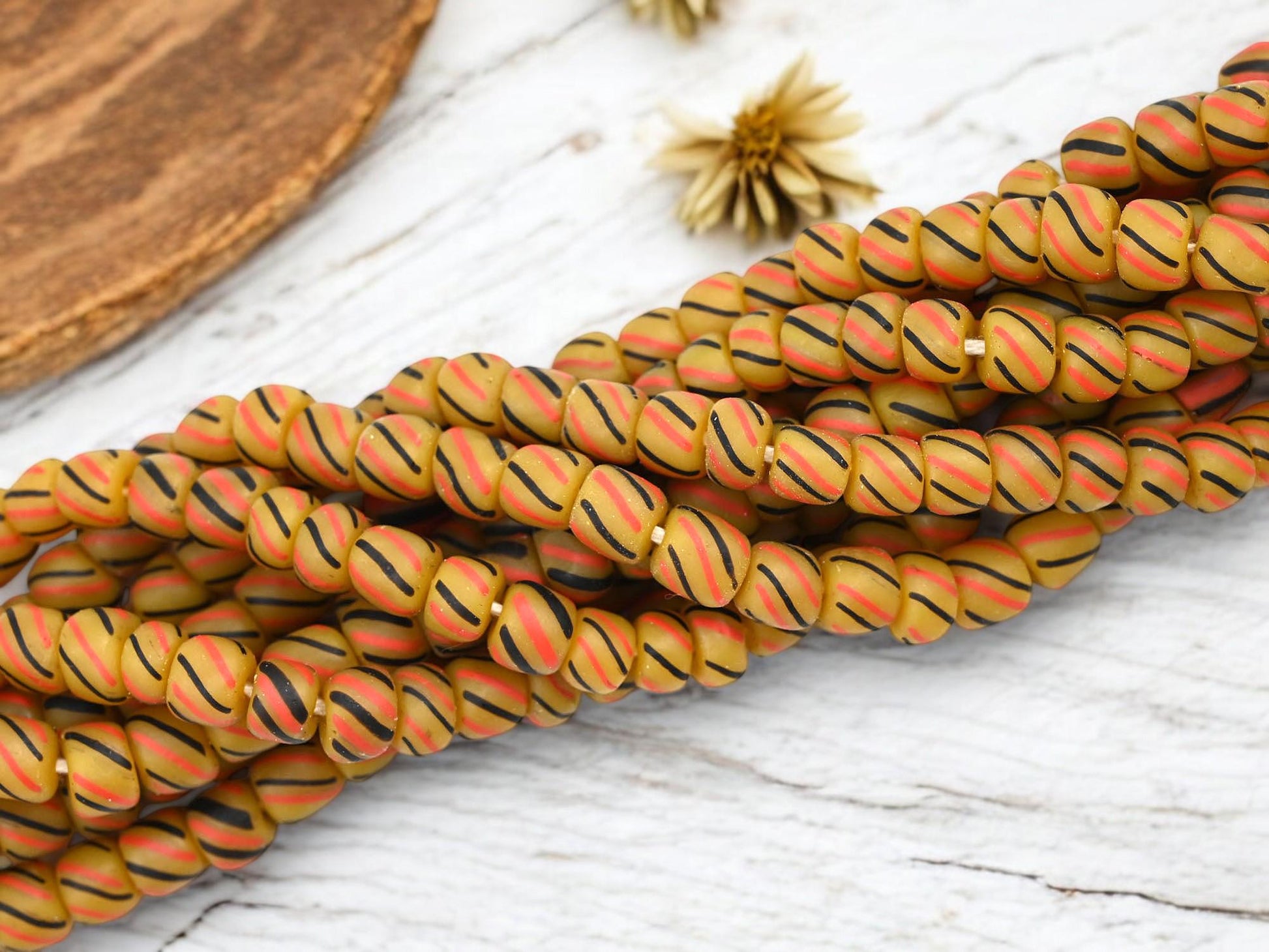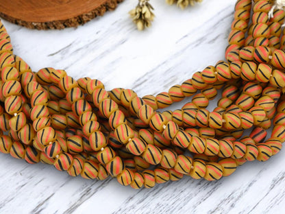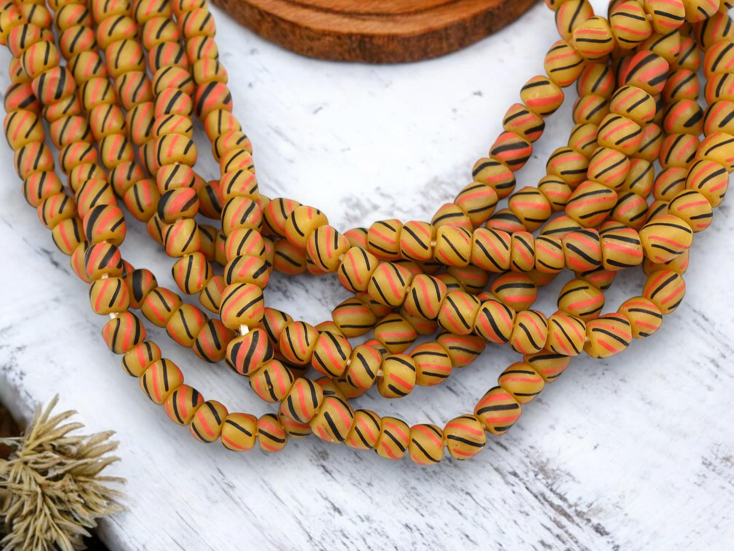 Striped Java Glass Beads. 6-8mm beads. Approx 24" Strands. 4-5 beads per inch