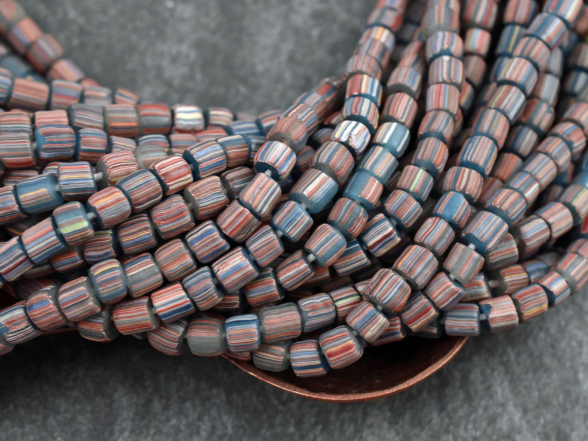 Striped Java Glass Beads -- Approx 24" Strand - Indonesian Glass Beads