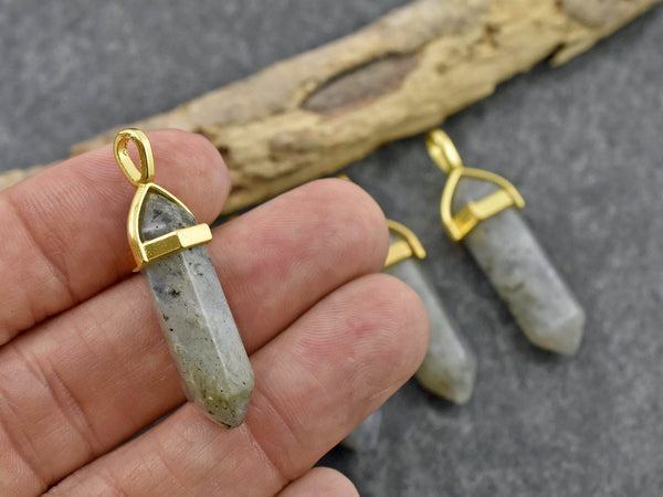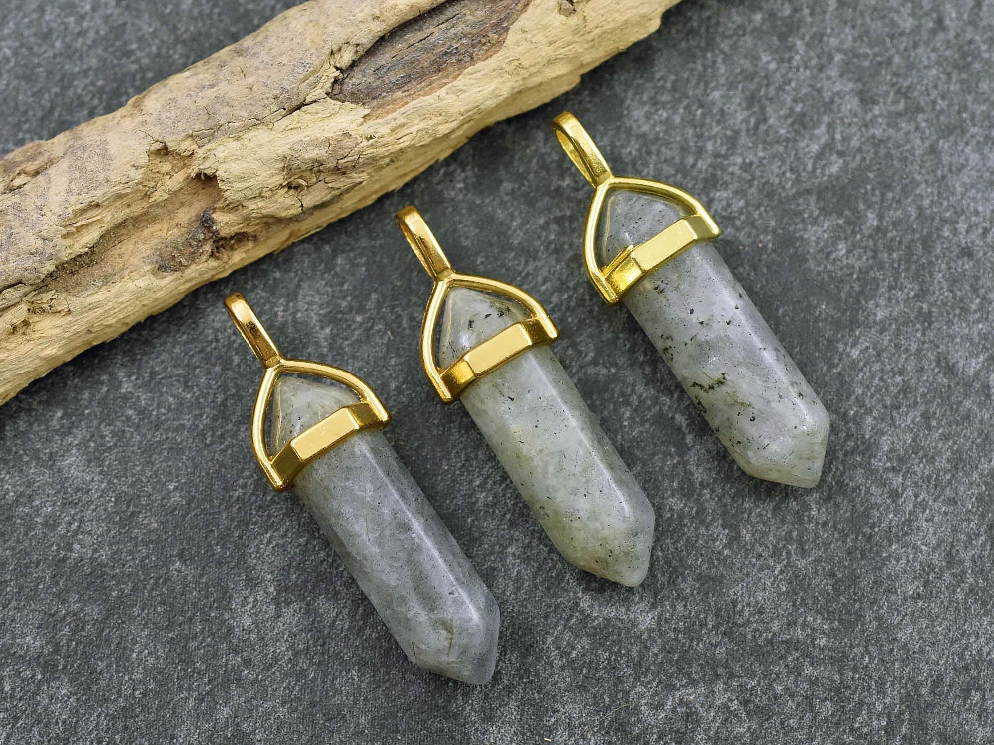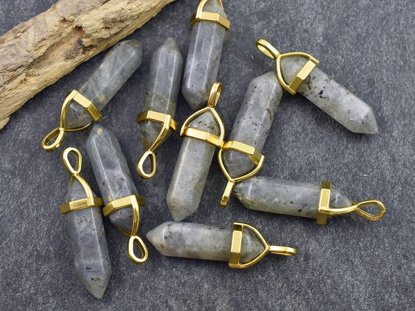 40mm Gold Tone Natural Labradorite Double Terminated Bullet Pendant