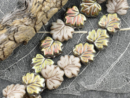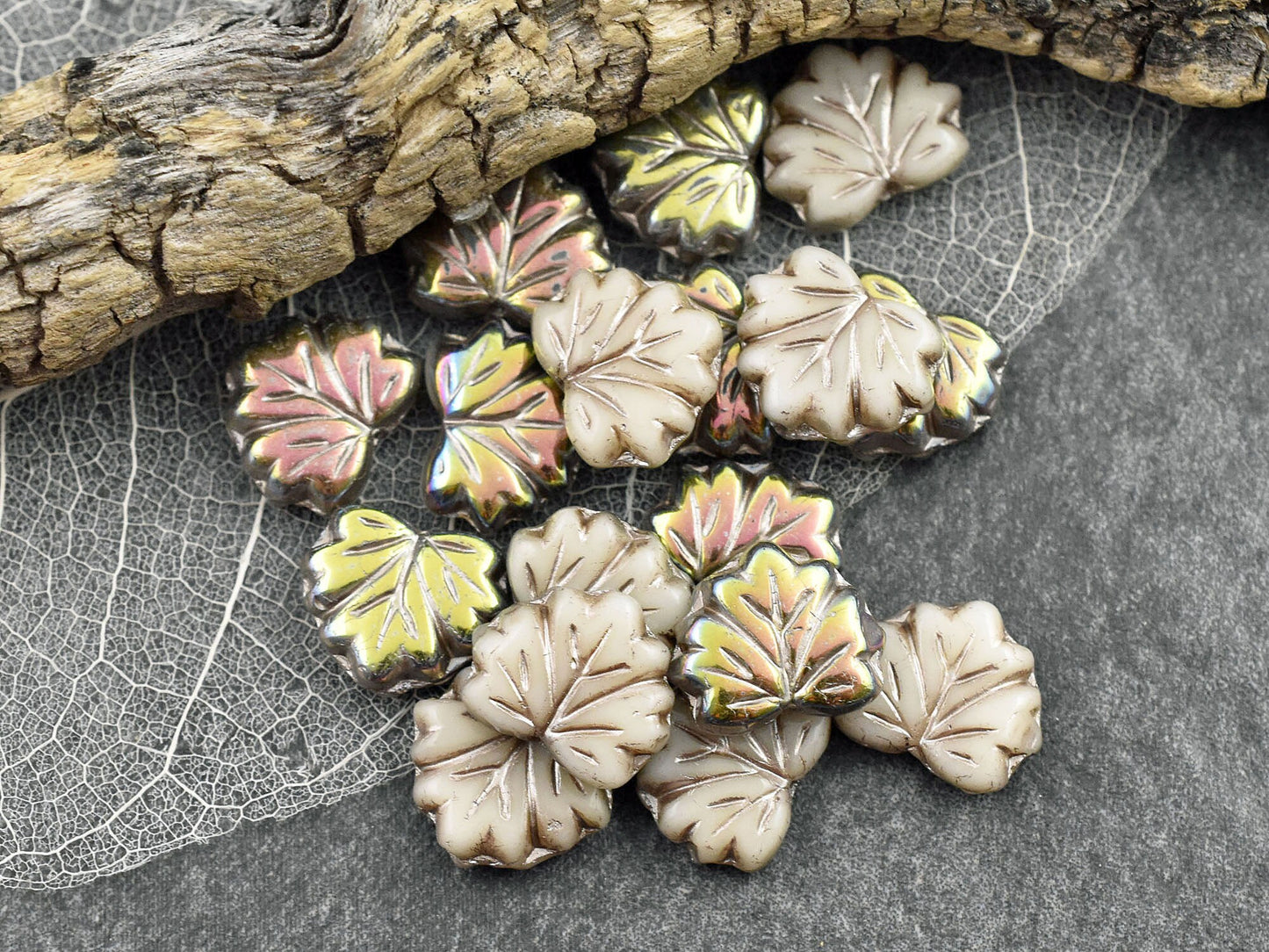*20* 13x11mm Platinum Washed Opaque Ivory Marea Maple Leaf Beads