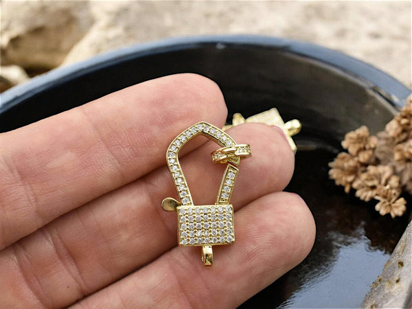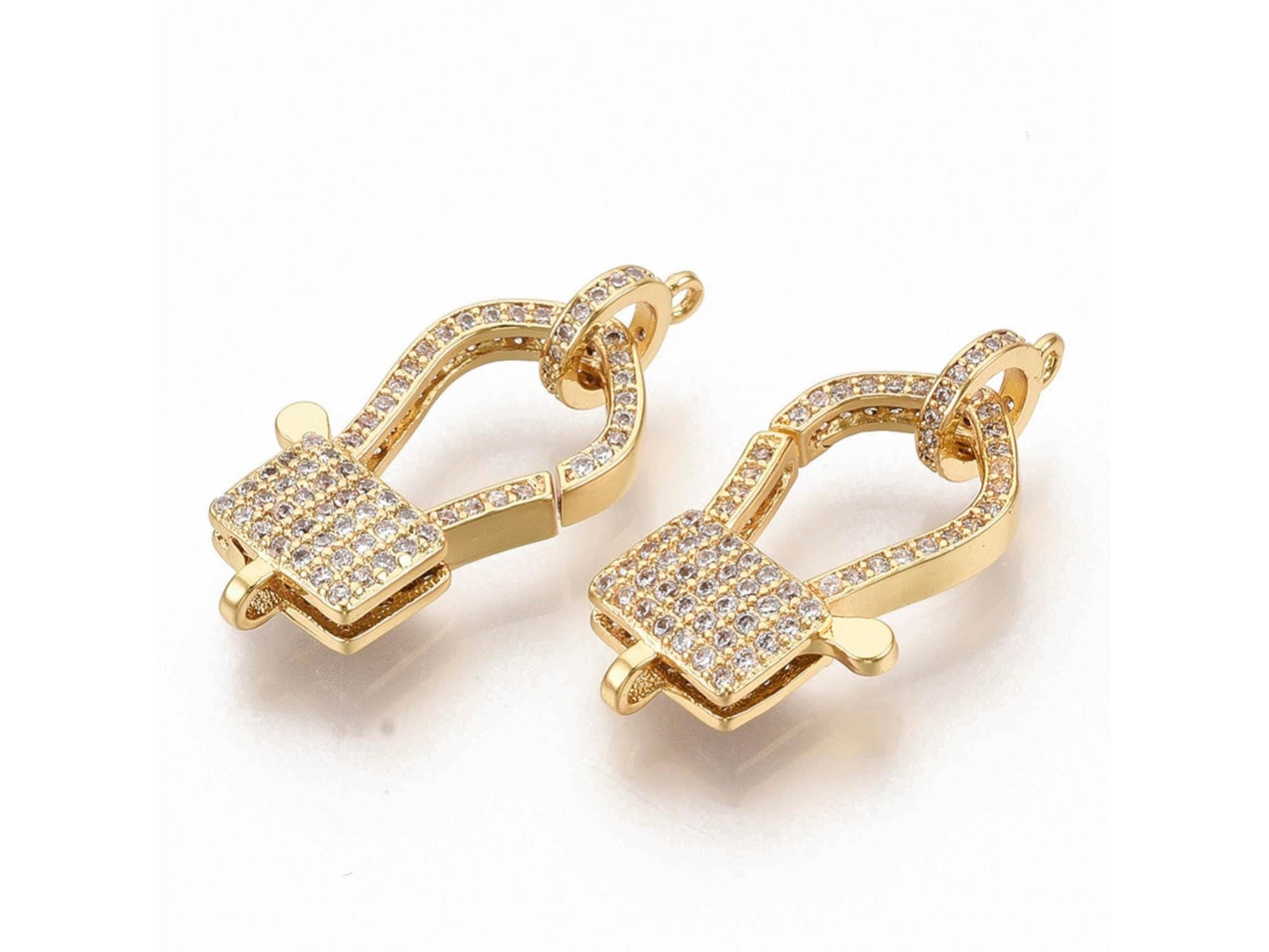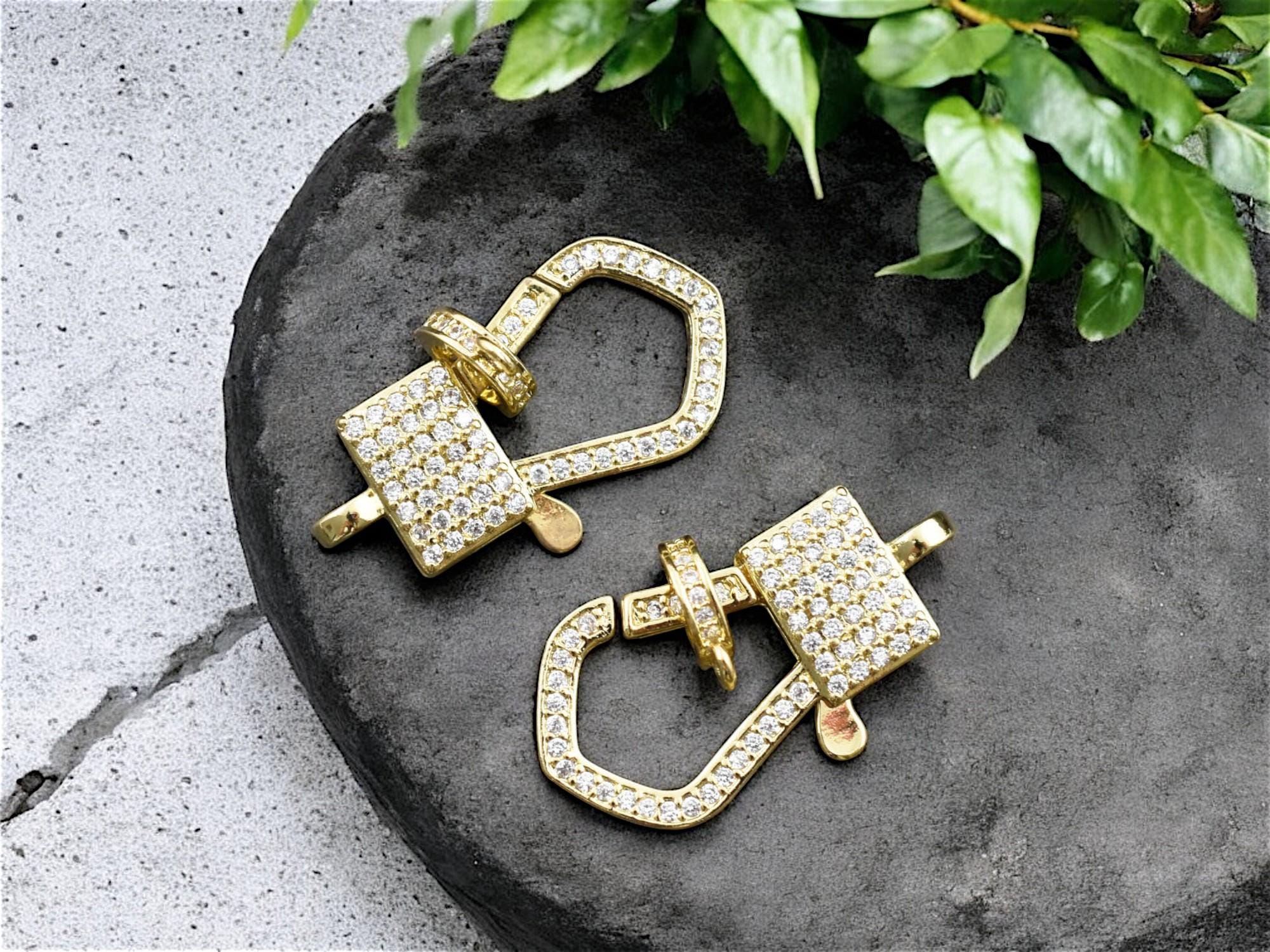 25x15mm Micro Pave Cubic Zirconia Gold Lobster Clasp