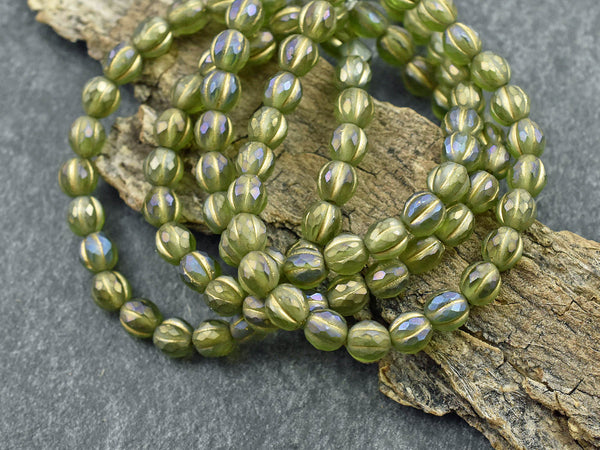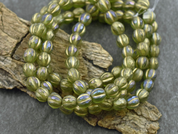 *25* 6mm Gold Washed Matte Peridot Luster Faceted Round Melon Beads