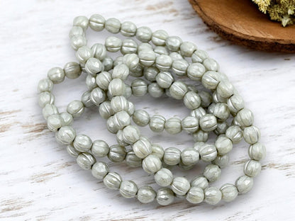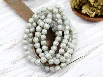 *25* 6mm Silver Washed Pale Grey Faceted Round Melon Beads