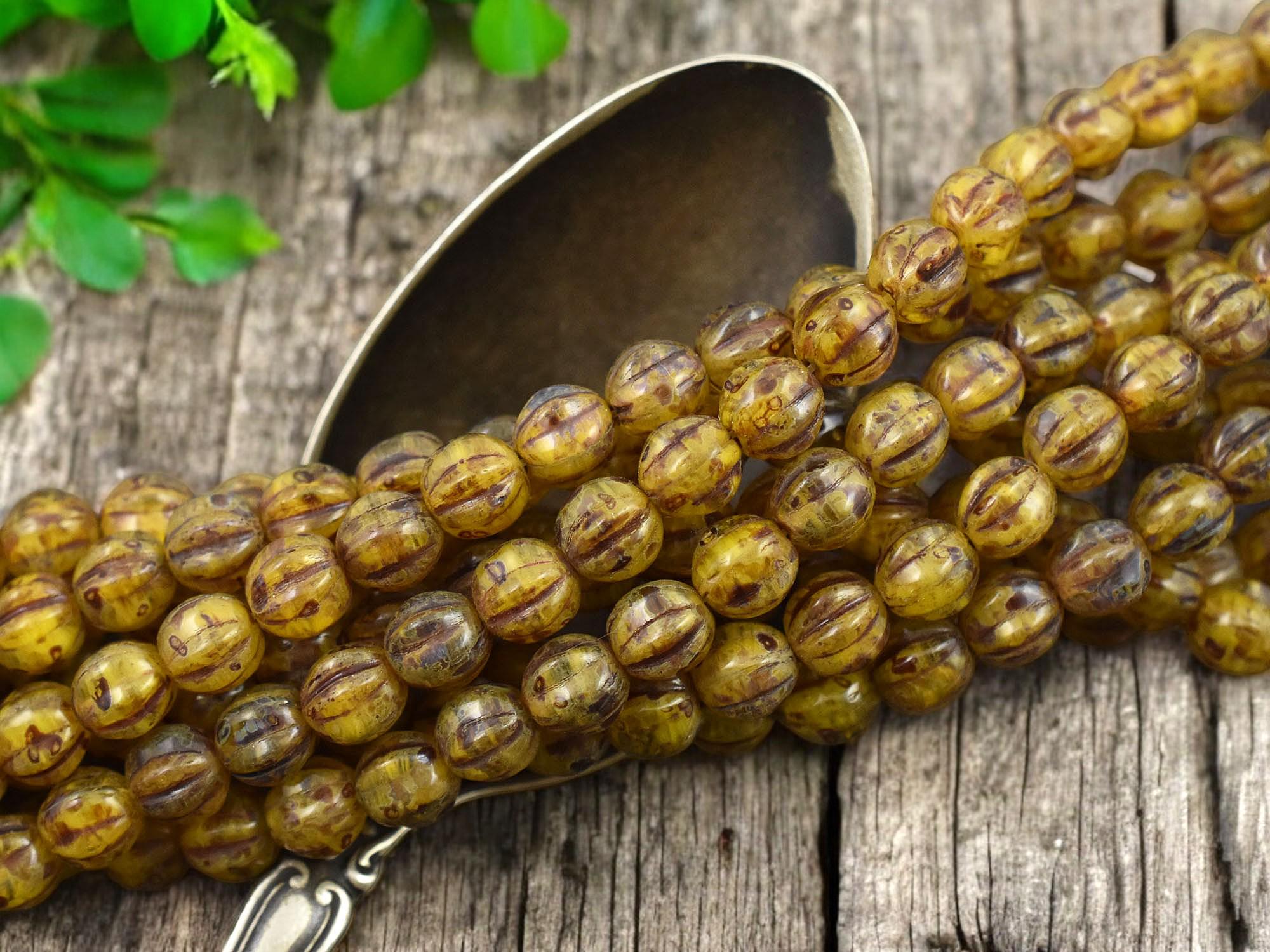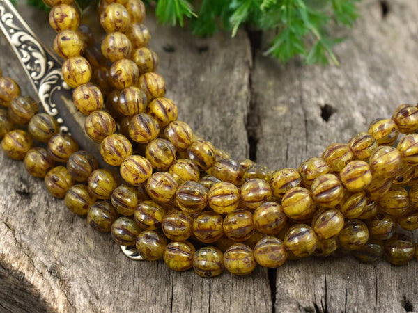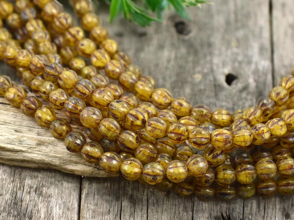 *25* 6mm Amber Opaline Travertine Round Melon Beads