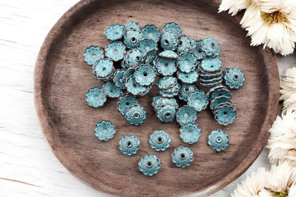 *15* 11x12mm Turquoise Washed Amber Ornate Acrylic Rectangle Beads