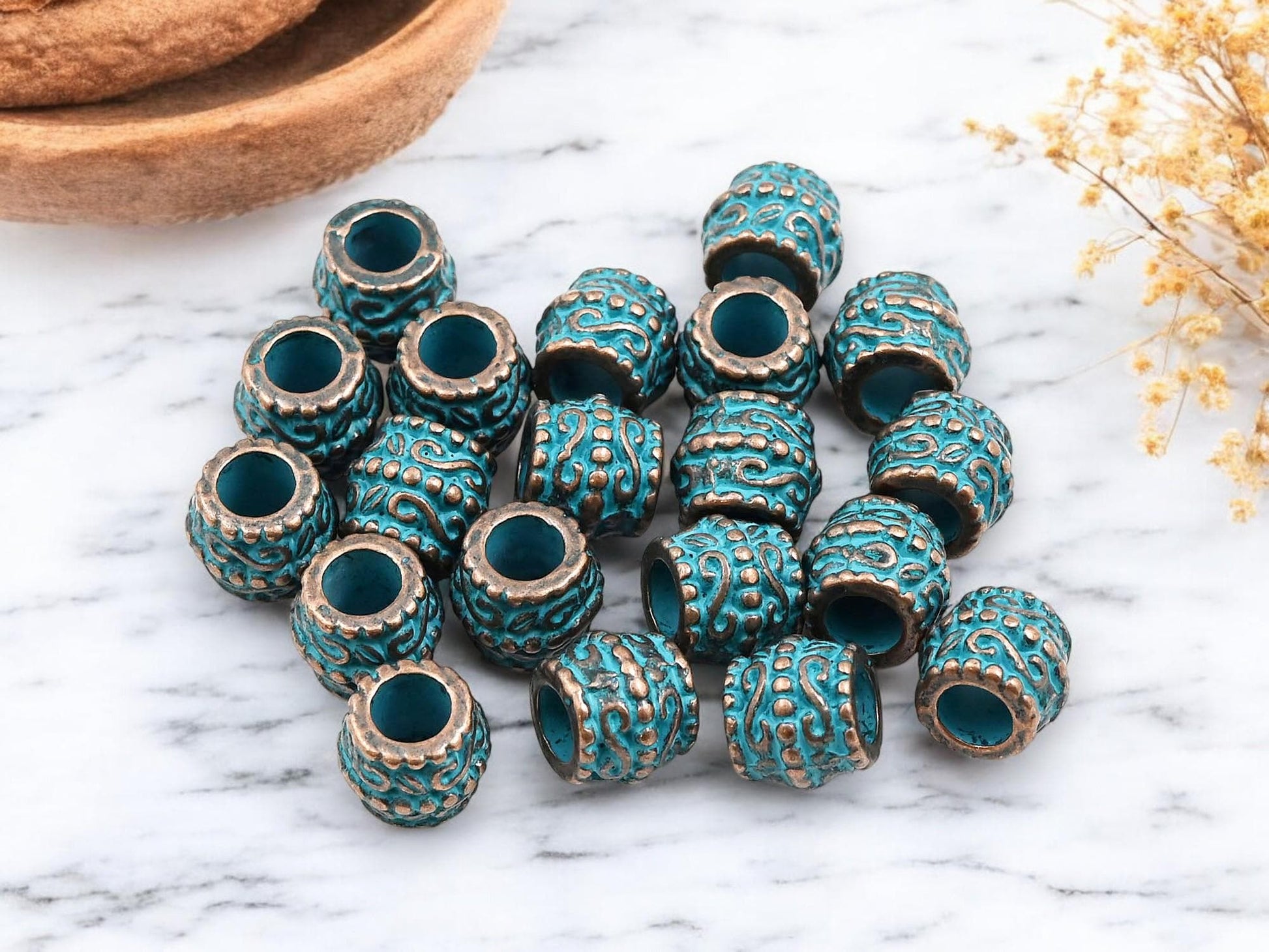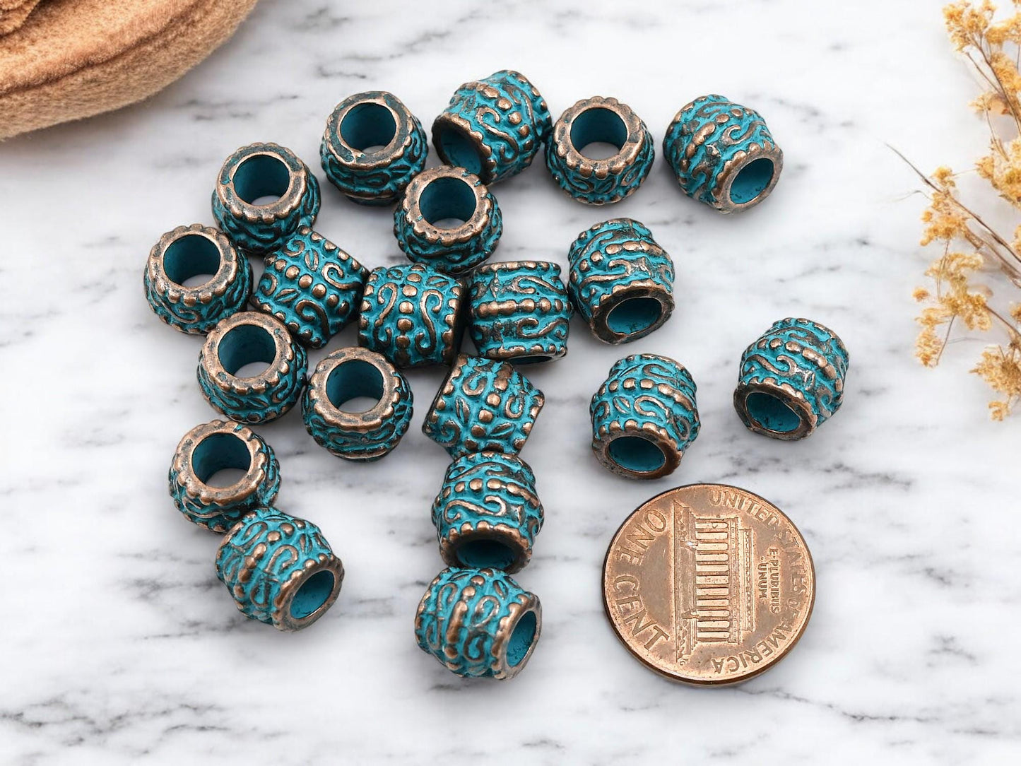 *20* 10x9mm Copper Patina Large Hole Barrel Beads