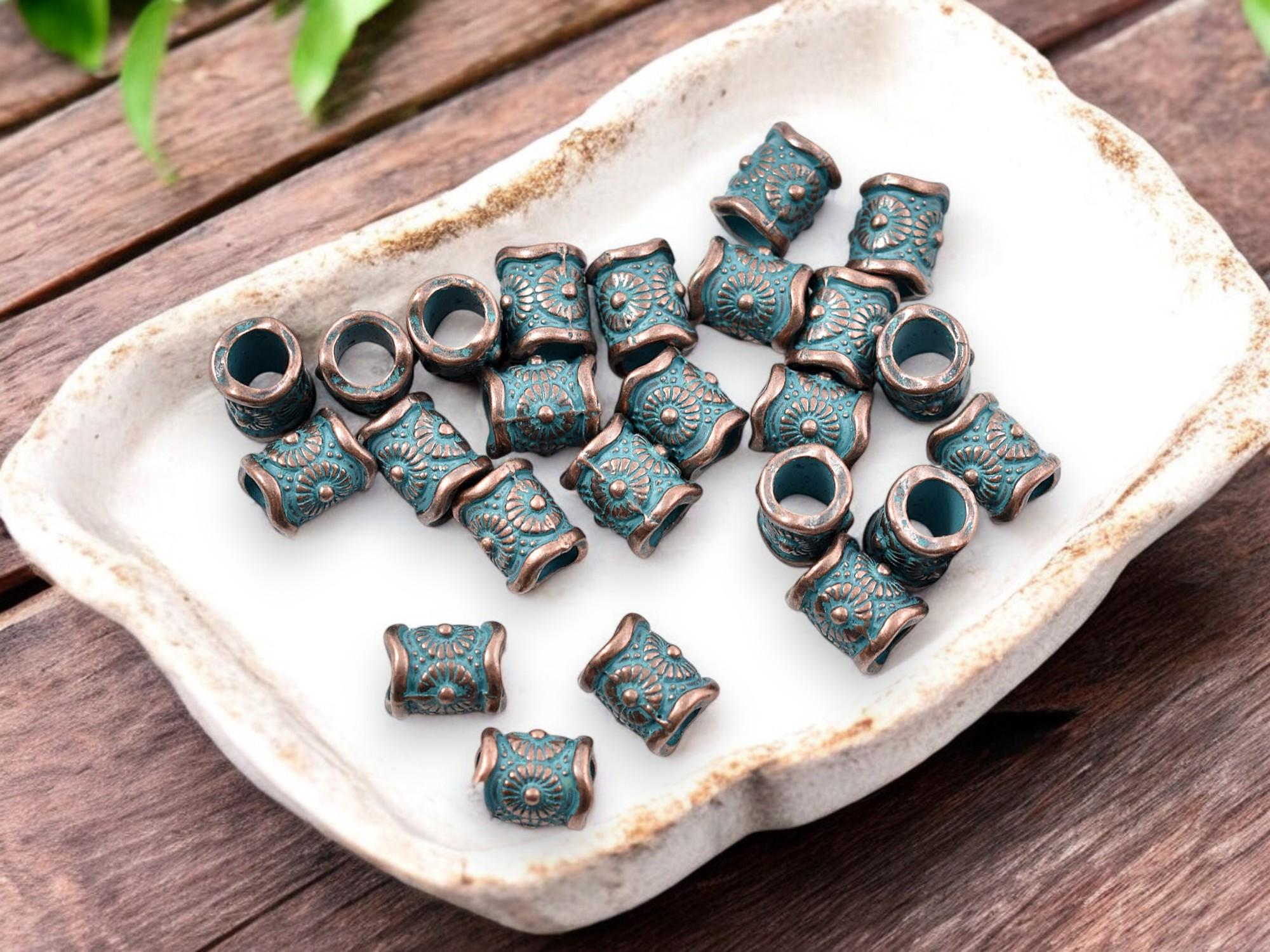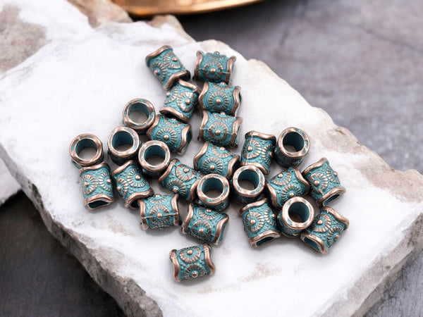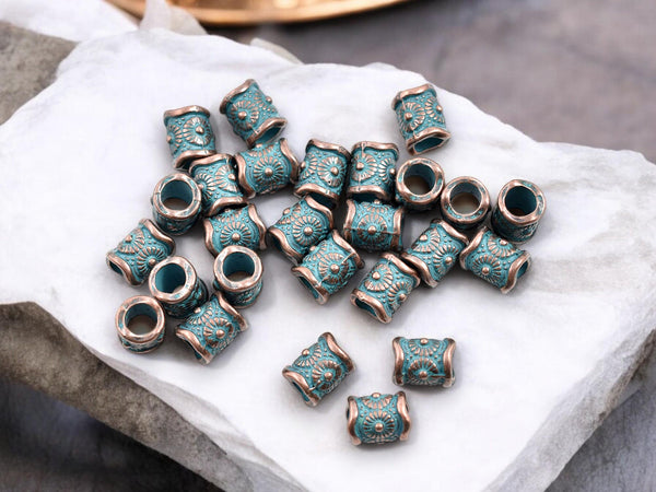 *50* 8x7mm Turquoise Washed Copper Art Deco Tube Beads