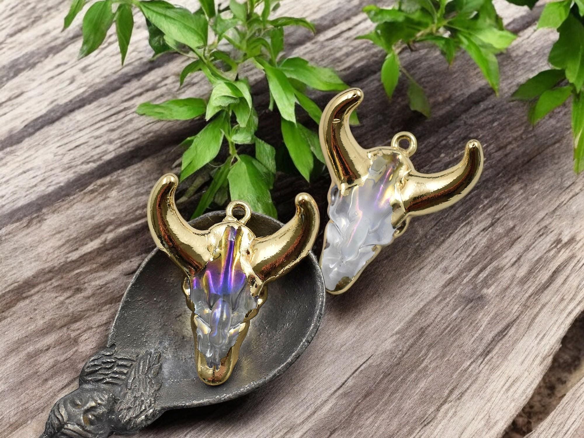 This 29x26x13mm Gold Plated Brass charm pendant features a stunning Crystal AB Cattle Head design. Crafted with precision and elegance, its gold plating adds a touch of luxury. Perfect for jewelry making and unique accessories, this pendant brings a sense of charm to any attire.