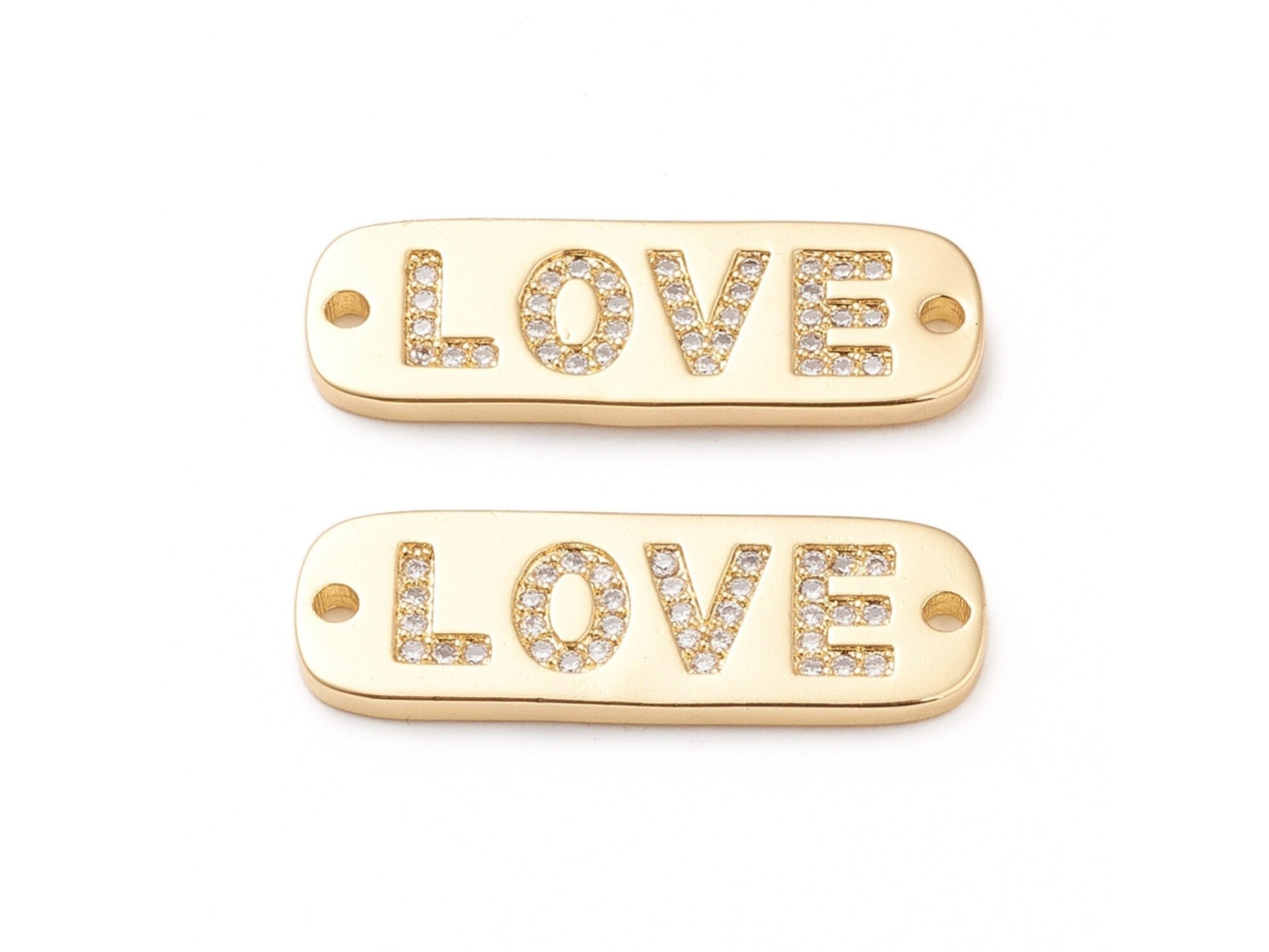 Type/Shape: 18k plated brass micro pave cubic zirconia rectangle oval "LOVE" link/charm
