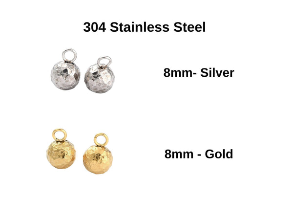8mm 304 Stainless Steel Hammered Ball Charms - Choose Your Color