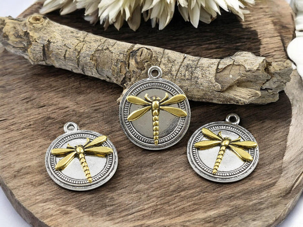 *10* 25x22mm Antique Gold/Silver Dragonfly Coin Charms