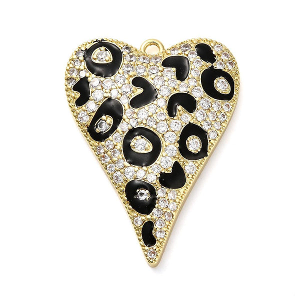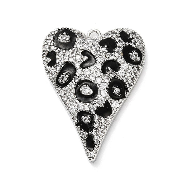 22x29mm Plated Brass Micro Pave CZ Leopard Elongated Heart Charms - Gold or Platinum