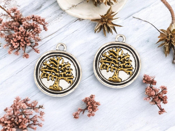 *10* 23x20mm 2 Tone Silver/Gold Tree of Life Charms