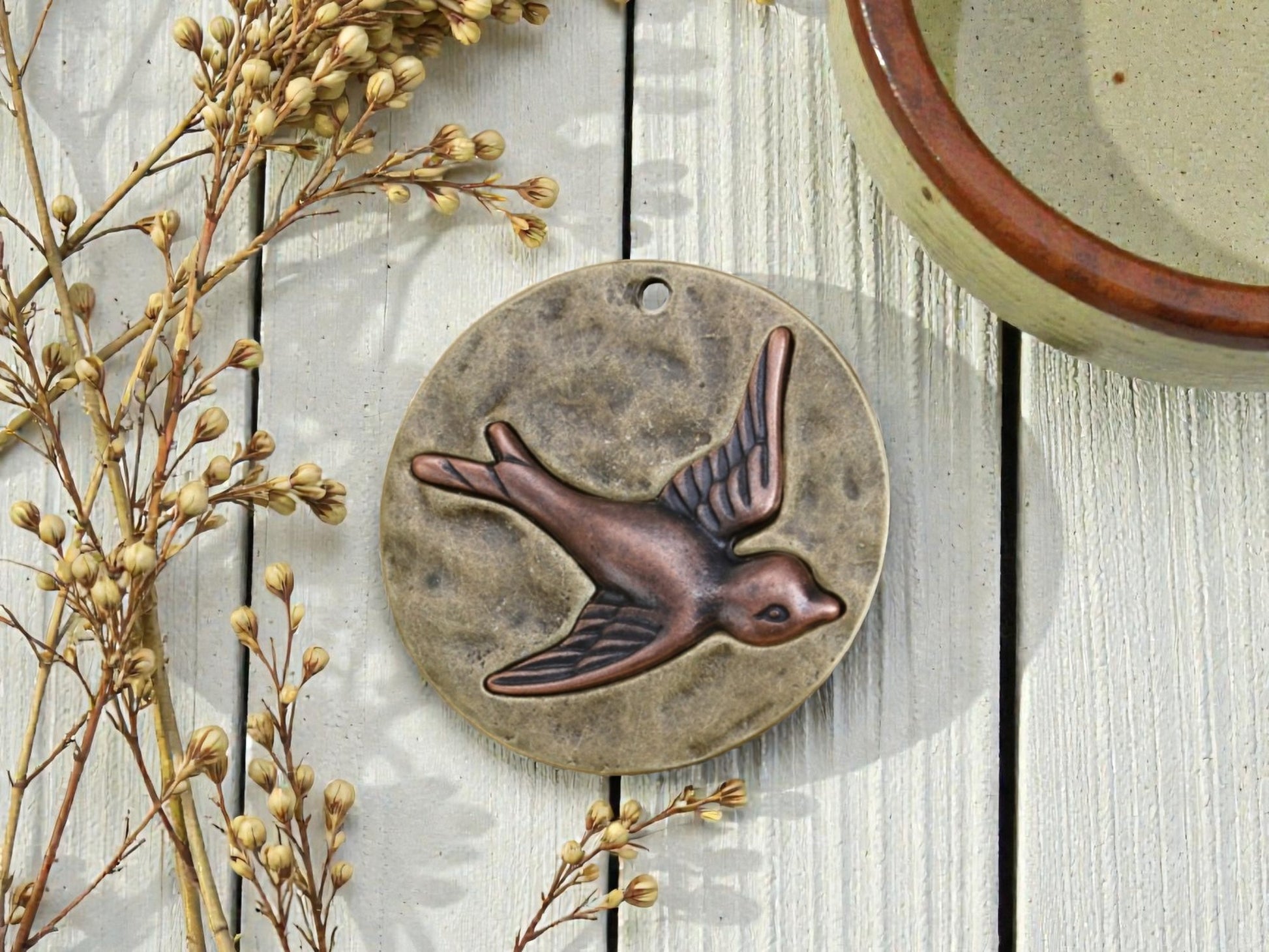 *2* 41mm 2 Tone Bronze/Copper Hammered Metallion Bird Pendants