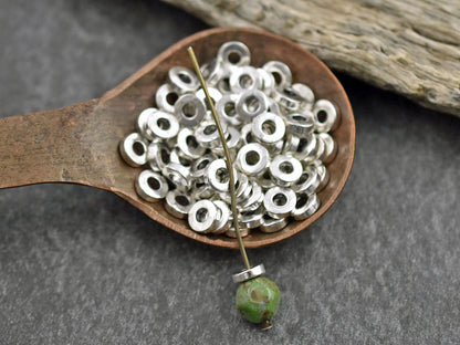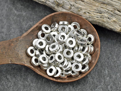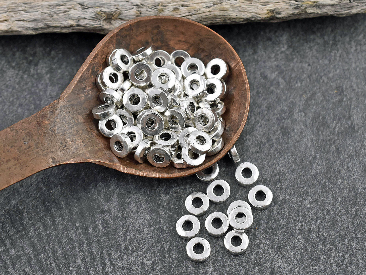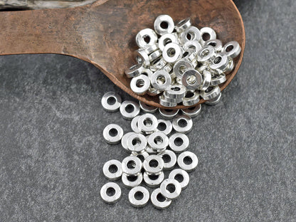 *100* 6x2mm Antique Silver Donut Spacer Beads