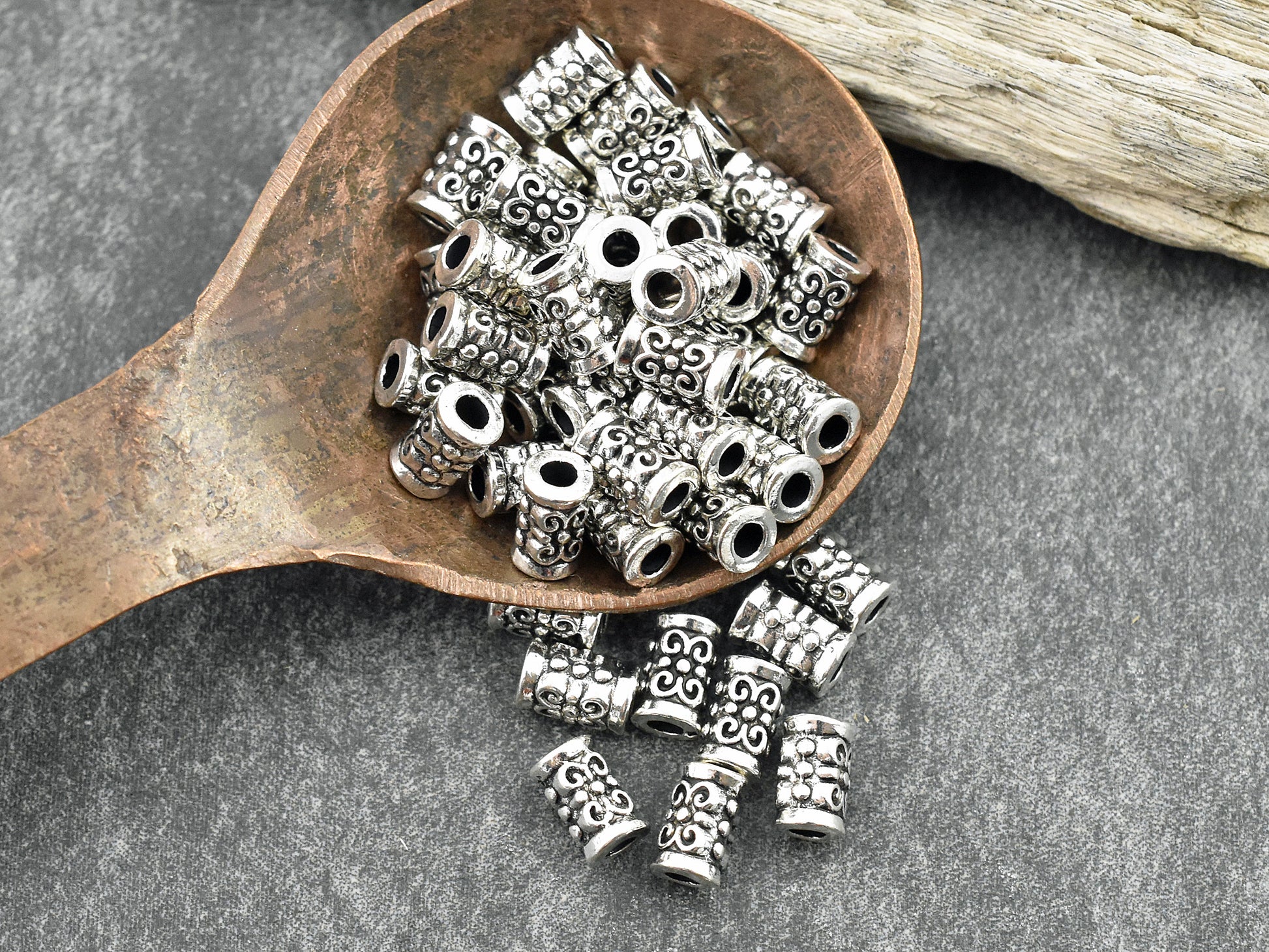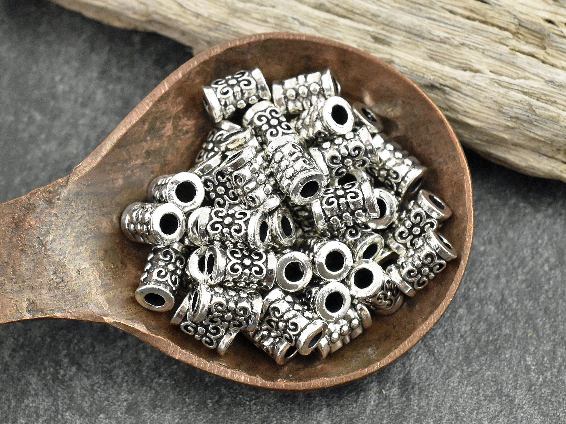 *100* 5x7mm Antique Silver Tube Beads