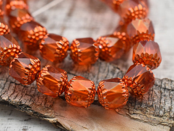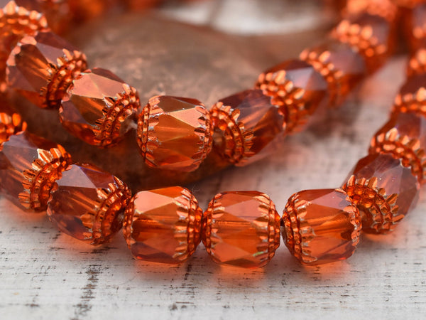 Orange Washed Tangerine Apollo Fire Polished Cathedral Beads