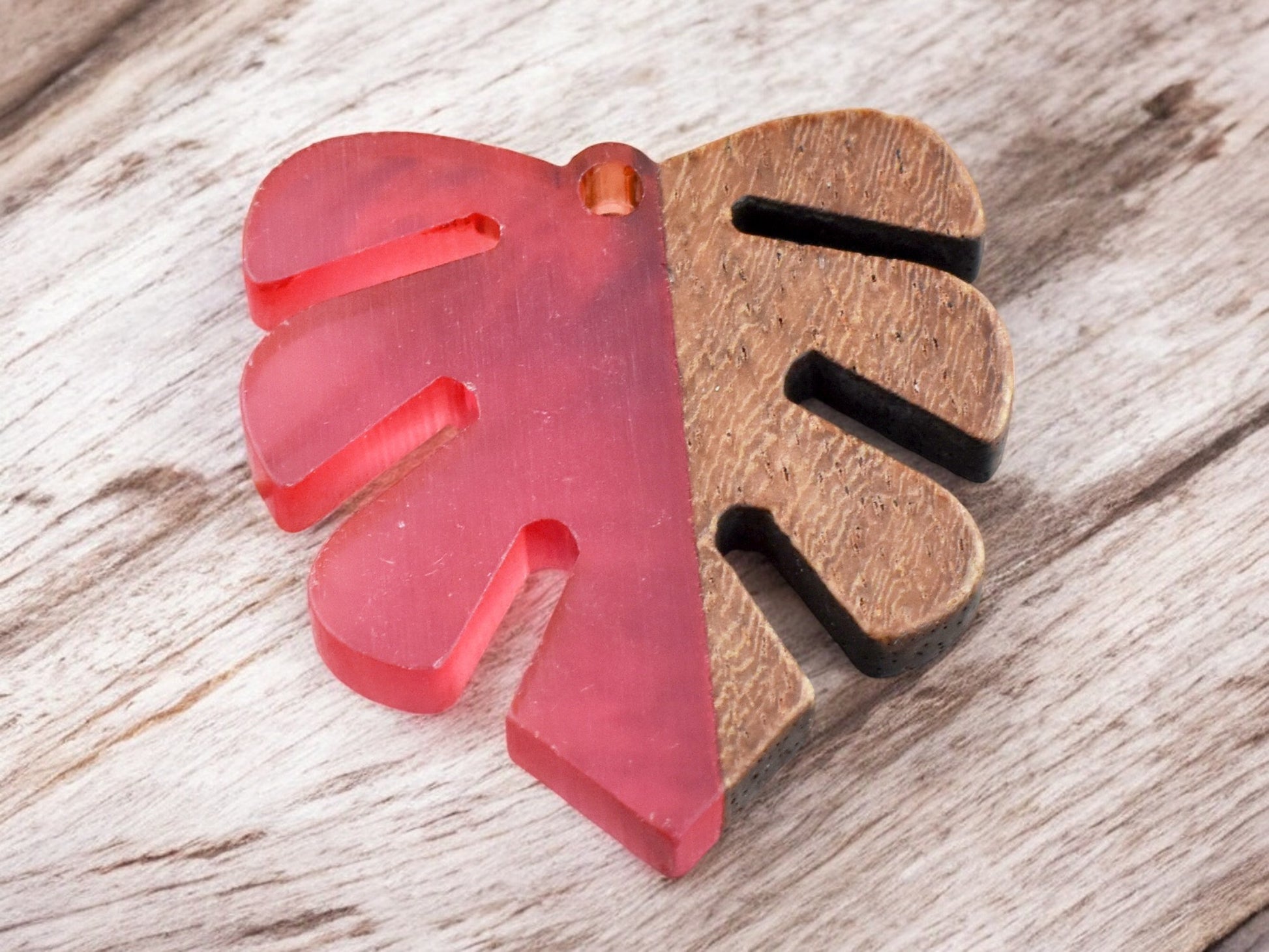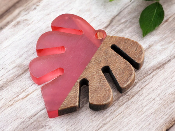 30x28mm Wood/Resin Palm Leaf Pendant (Red)