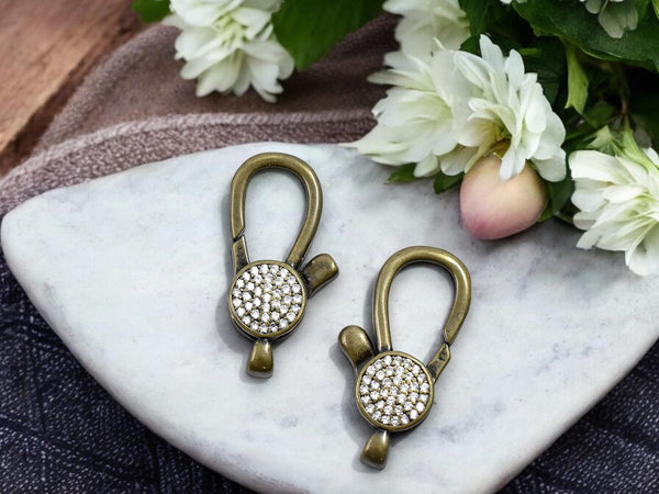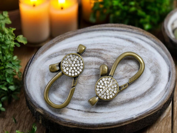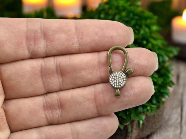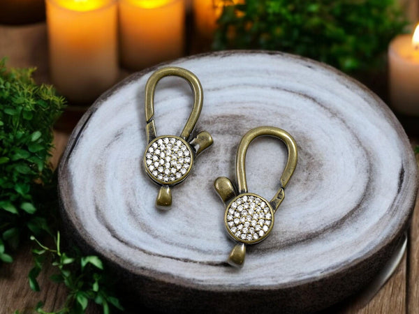 *2* 25x14mm Antique Bronze Micro Pave Cubic Zirconia Lobster Claw Clasps