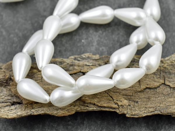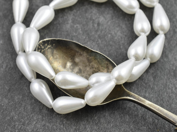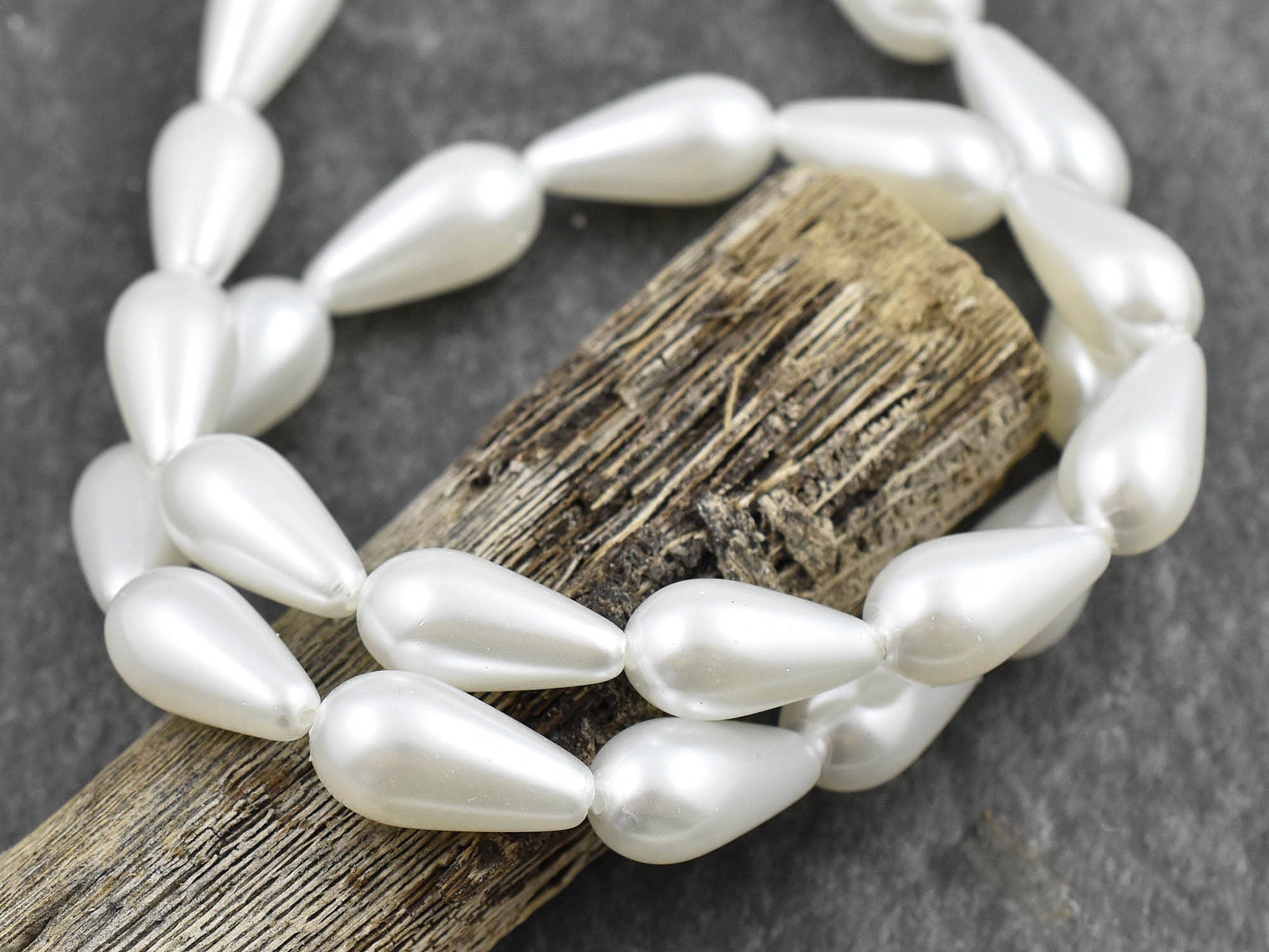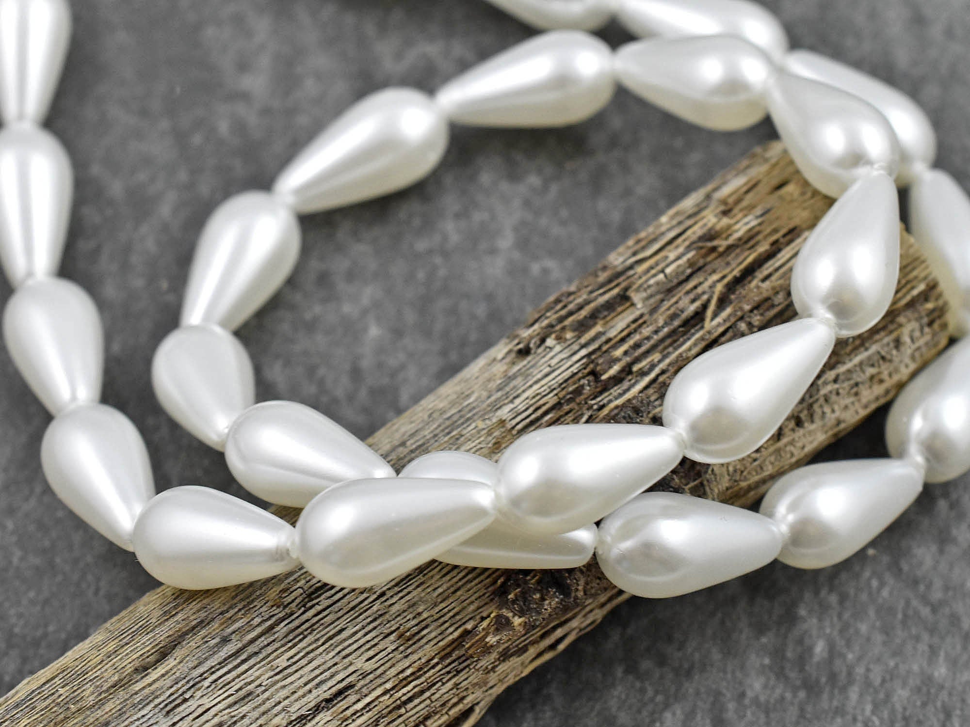 15x8mm Celestial Crystal White Pearl Teardrop Beads (16" Strand)
