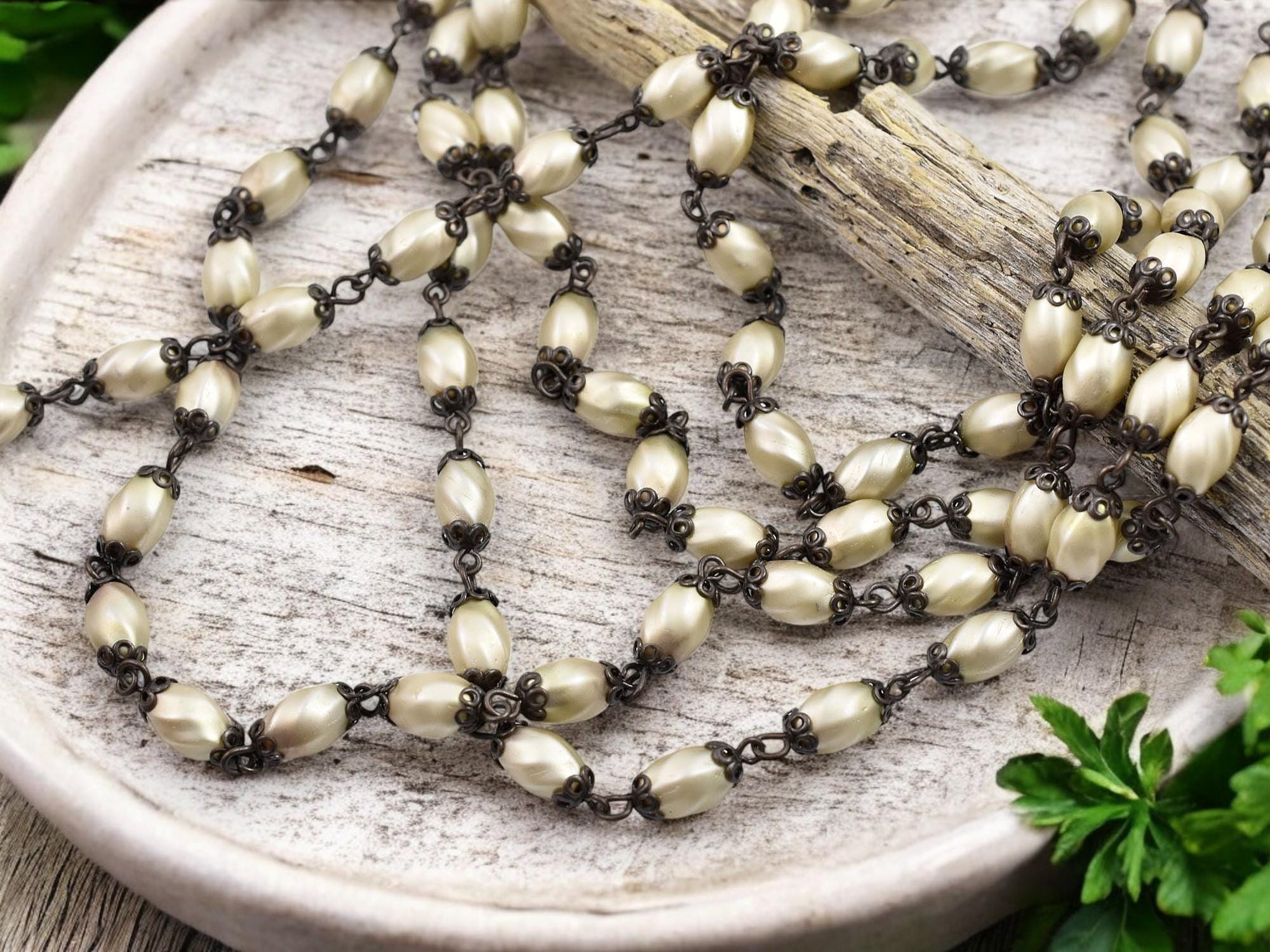 ♥ Color: Matte cream twisted oval pearls with antique bronze caps