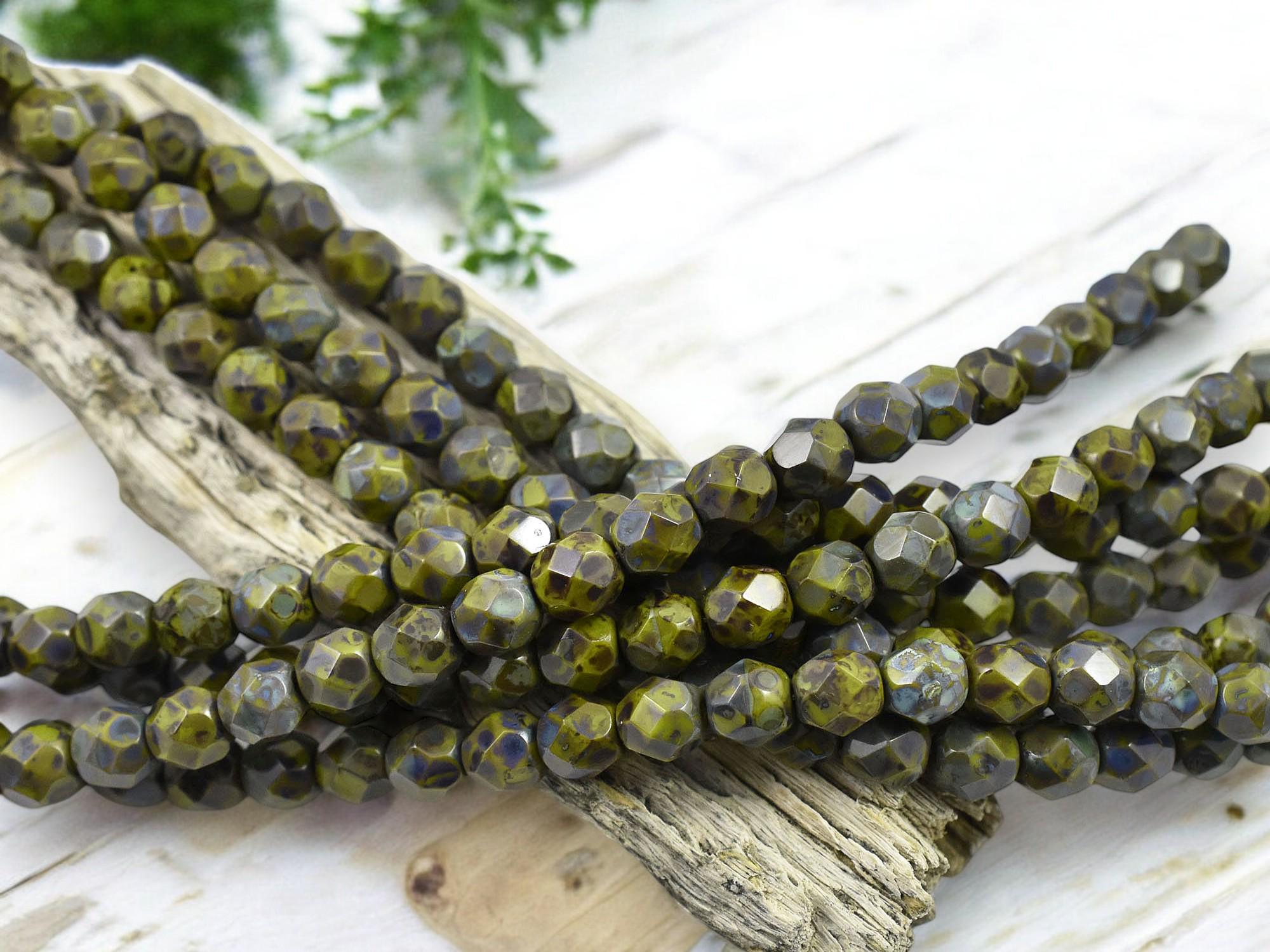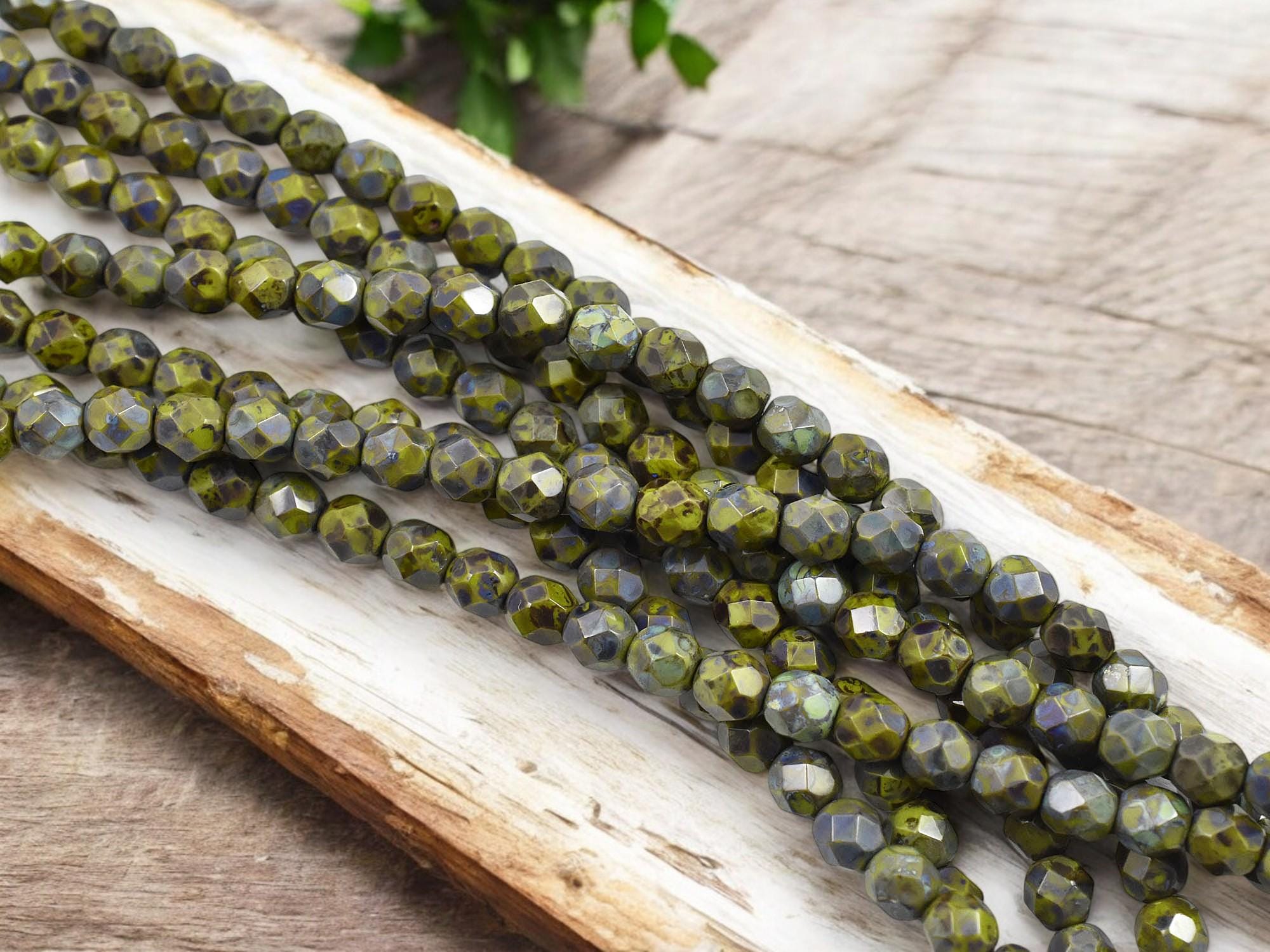 *25* 6mm Opaque Olive Green Picasso Fire Polished Round Beads