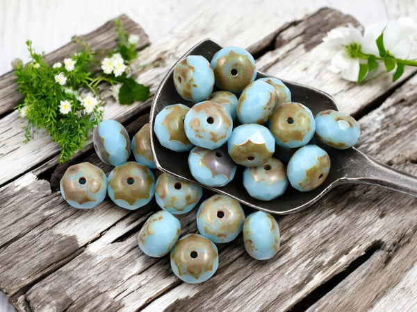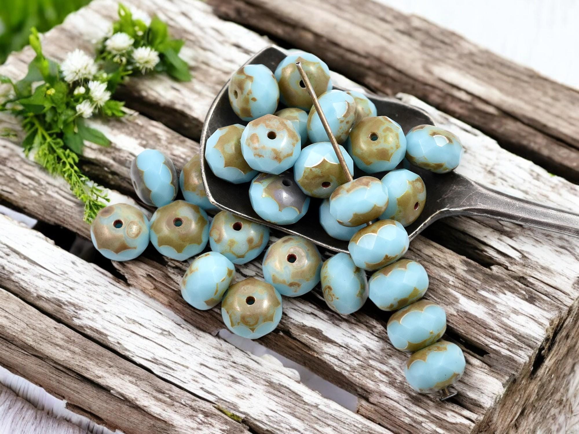 *25* 6x8mm Opaque Robins Egg Picasso Fire Polished Rondelle Beads