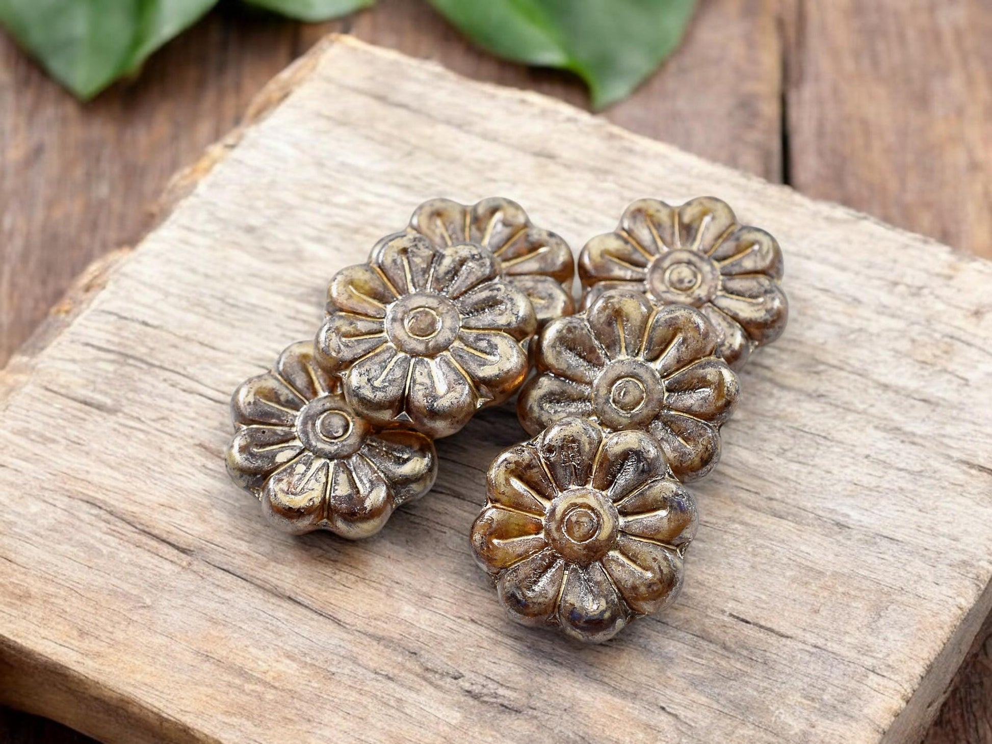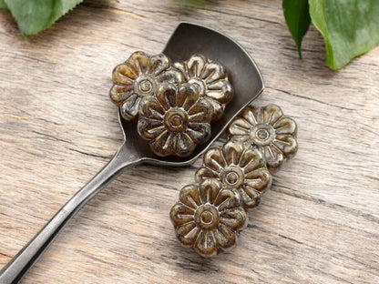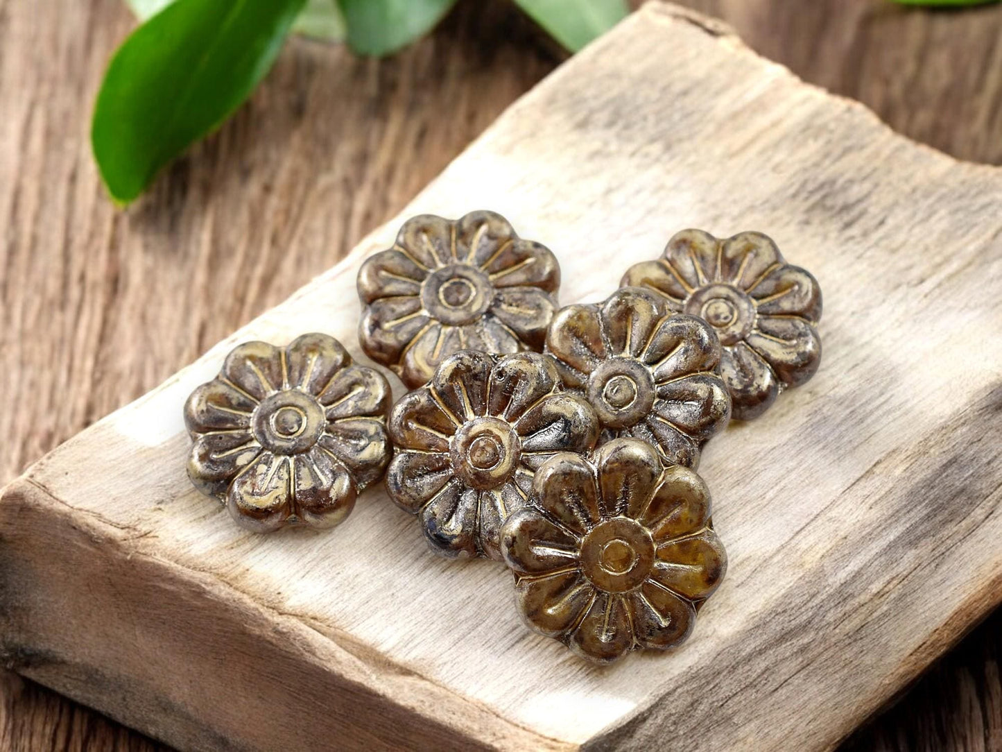 *6* 18mm Bronze Washed Amber Daisy Flower Beads