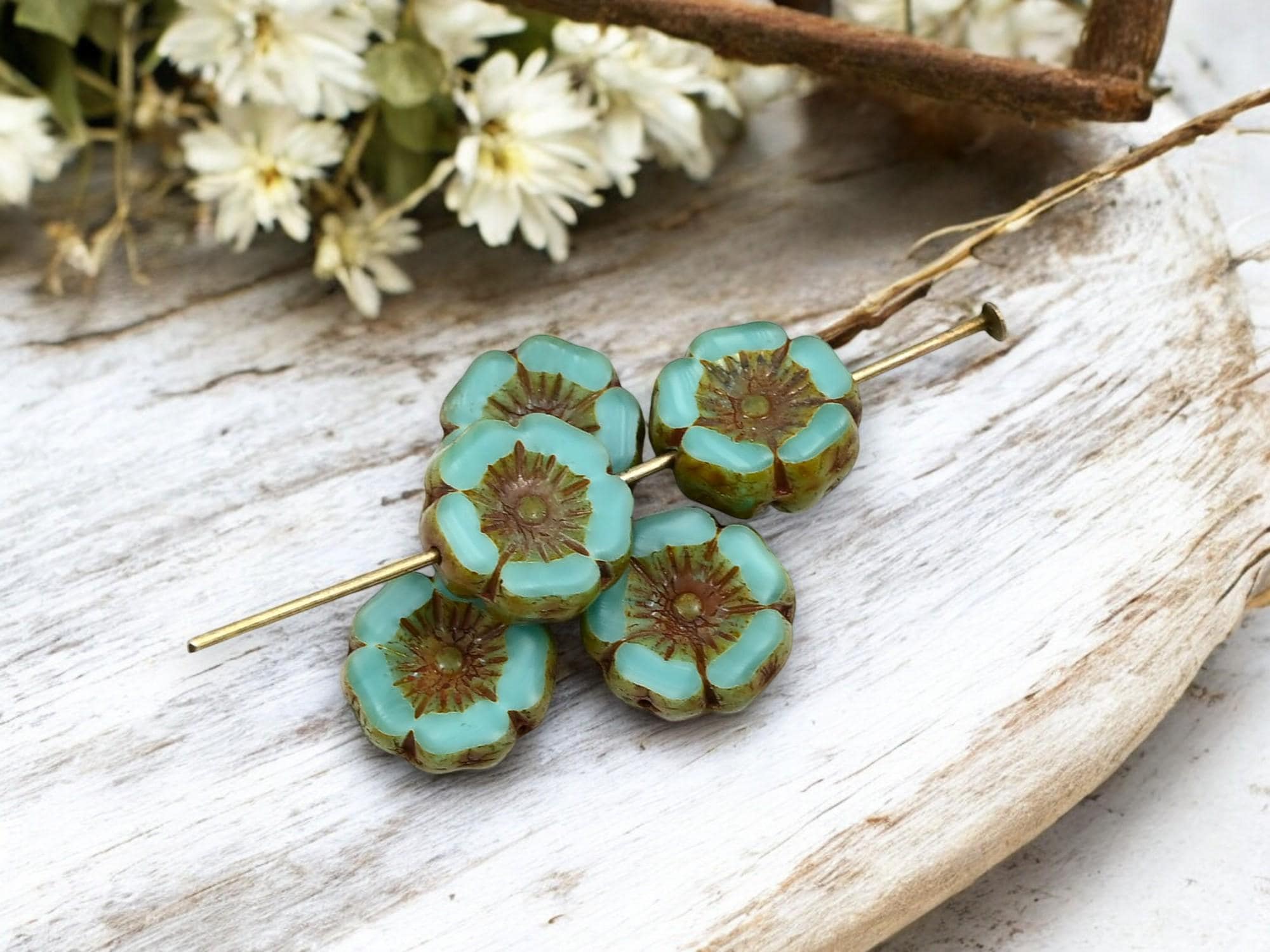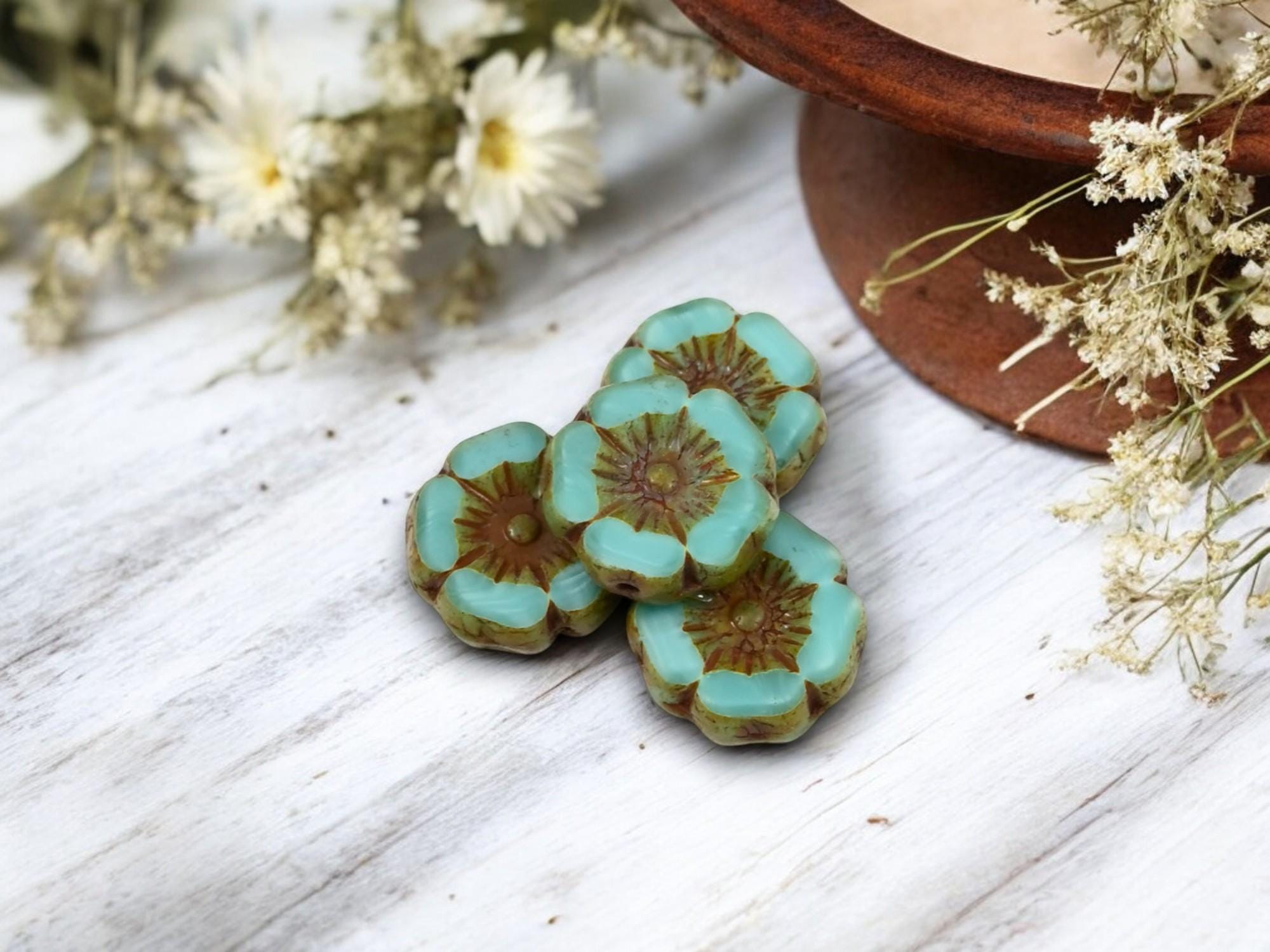 *12* 12mm Turquoise Silk Picasso Hawaiian Flower Beads